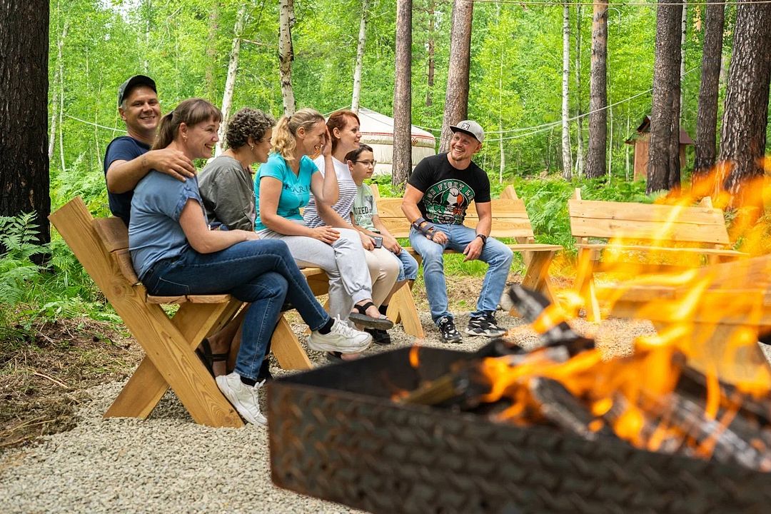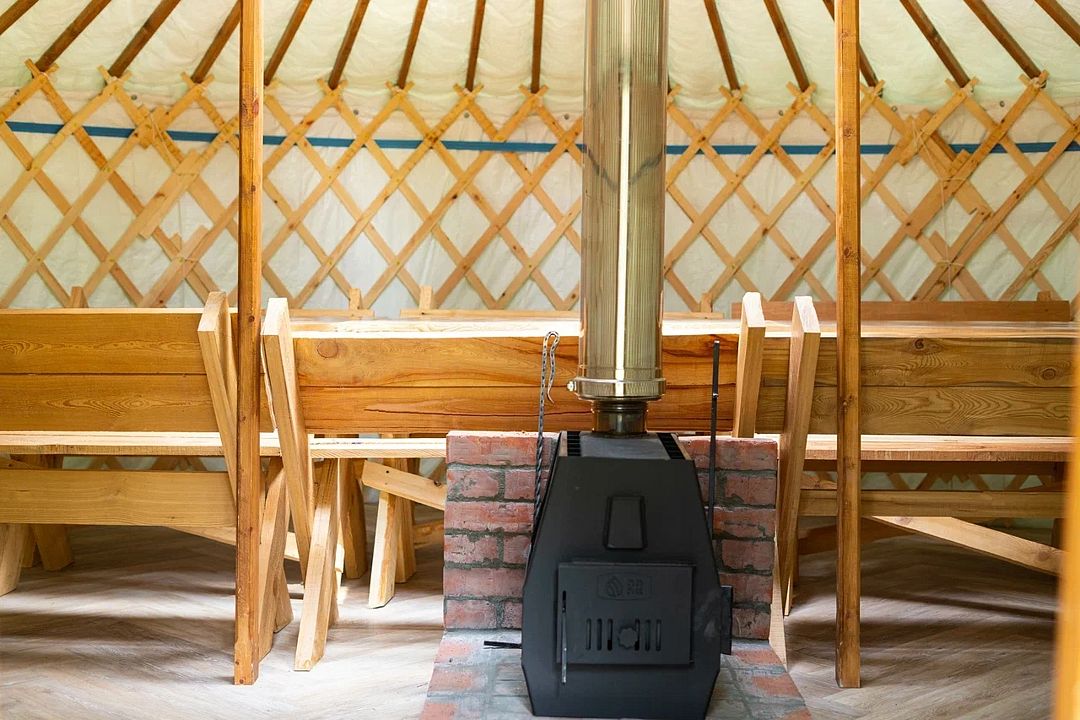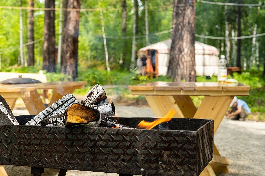 Гости могут насладиться уютной мангальной зоной, расположенной рядом с каждой юртой. Здесь вы сможете приготовить вкусные блюда на мангале, отдыхая на удобных скамейках в компании друзей и близких.
