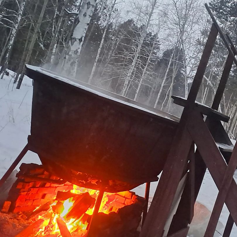 После посещения уютной баньки гости могут насладиться купанием в сибирском банном чане, восстанавливая силы на свежем воздухе. Это прекрасное завершение расслабляющего дня, проведенного на лоне природы.