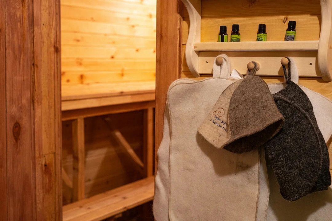 В дополнение к этому, предоставляются возможность аренды личного коврика для бани, веника из березы или пихты, а также индивидуальной шапки.