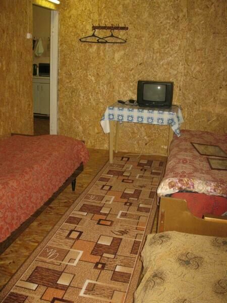 Полный комплект посуды, телевизор, холодильник, микроволновка, электрочайник. В каждой комнате по три спальных места. Туалет уличный.