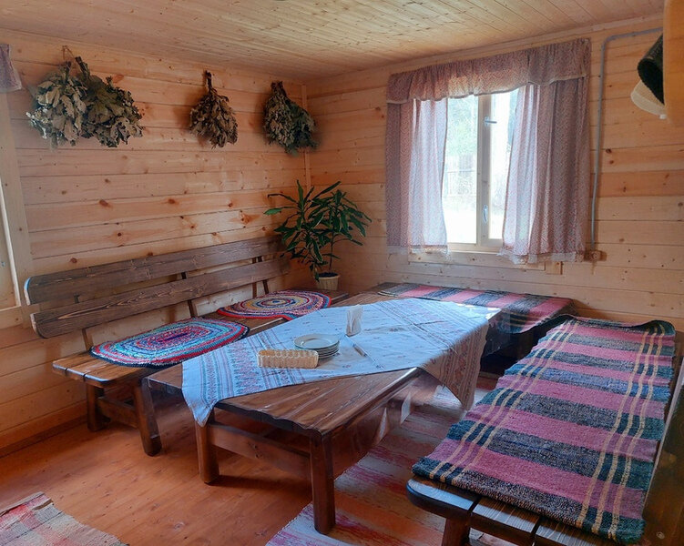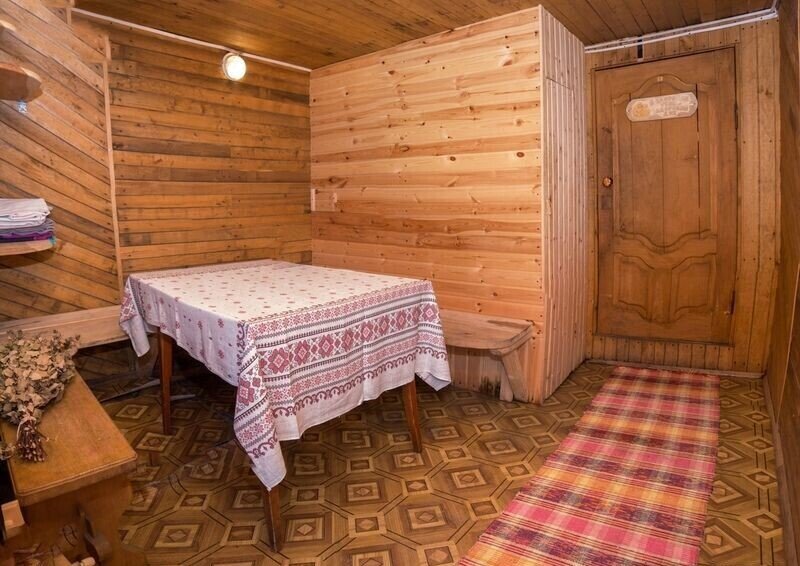 Здесь можно не только попариться, но и выпить кружку ароматного чая с натуральными лесными добавками в комнате отдыха. Можно воспользоваться березовыми или дубовыми веничками, сделать маски из глины и меда.