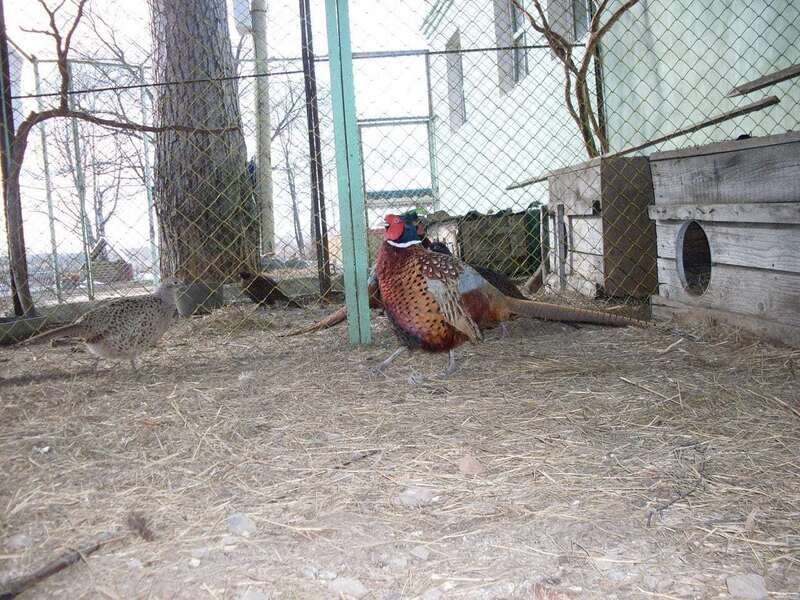 На территории гостевого комплекса в вольерах живут кролики, фазаны, курочки. Всех можно покормить и погладить.