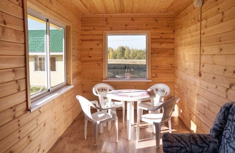 В доме все удобства: уютная спальня с двуспальной кроватью, шкаф, прикроватные тумбочки, гостиная зона с мягкой мебелью, чайным столиком, ЖК-телевизором, чайником, набором необходимой посуды. В номере также имеется холодильник. Санузел, горячая вода, душевая кабина, мыльные принадлежности. Выкладка в номере: постельное белье, полотенца в количестве 2 шт. на каждого проживающего. Особенностью этого номера является прекрасная терраса закрытого типа, которая также оборудована столом со стульями.