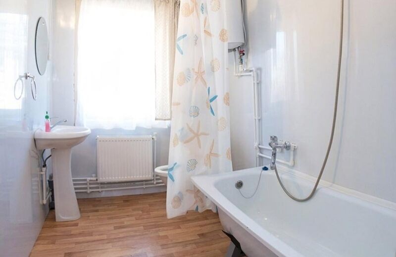 Санузел, горячая вода, ванна, мыльные принадлежности.