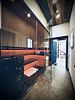 Интерьер выполнен в стиле альпийского шале, с панорамными окнами в пол и двойным светом в игровой зал. Здесь же расположен небольшой зимний сад, кухонное пространство, несколько мест для комфортного отдыха на мягких кожаных креслах, и место сбора гостей за большими красиво накрытыми столами.