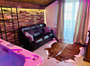 Тут же рядом можно устроить небольшой танцпол под диско-шаром, поиграть в игры, посмотреть любимый фильм на Smart tv, и устроиться на ночлег на дополнительном раскладном диване.