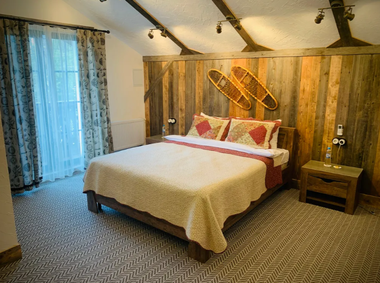 З просторные отдельные спальни, с балконами, выполненные в стиле шале, с мягким ковровым покрытием, обшитыми винтажной доской, задекорированные уютным текстилем, с персональными душевыми и туалетными комнатами, сантехникой высокого уровня, кондиционерами и жк телевизорами.