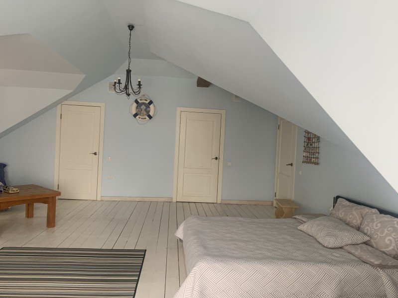 Уютная эко-дача площадью 275 кв.м с обеденной зоной, большой гостиной зоной, оборудованной детской игровой комнатой и четырьмя отдельными спальнями, каждая их которых имеет свою ванную комнату, санузел и гардеробную. Уединение, тишина, смешанный лес, сосновый бор, чистый воздух — все это не оставит равнодушным ни одного гостя.
