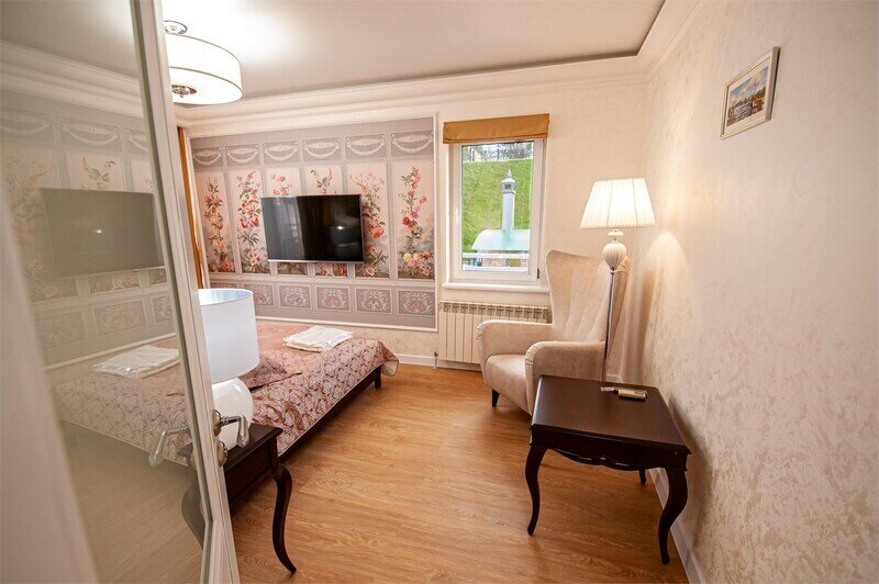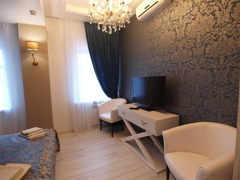 В гостинице 44 уютных номера с классическим дизайном и современной мебелью. В гостинице номера нескольких категорий – апартаменты, комфорт, делюкс, люкс, полулюкс семейные, полулюкс, стандартные DBL, TWIN, однокомнатные и двухкомнатные номера первой категории и эконом класса. Все номера укомплектованы по стандартам и с удобствами. Вид из окон гостиницы на достопримечательности города (Волжский бульвар и собор) и на реку Волга.