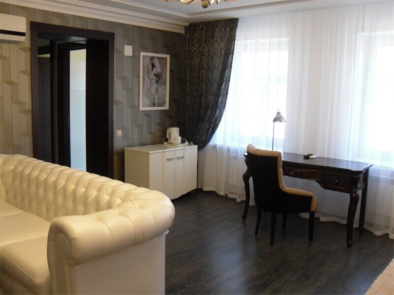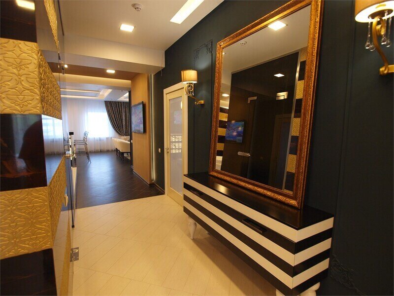 SUITE (Номер Сьют) — просторный номер повышенной комфортности с оригинальным дизайнерским решением. Он состоит из холла, спальни и отдельной зоны отдыха (гостиной) с диваном и столиком.