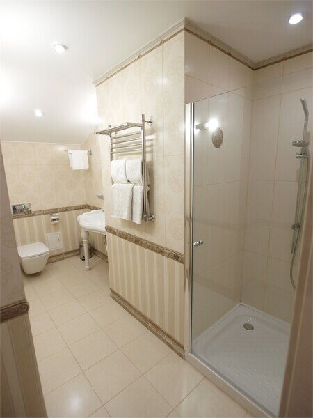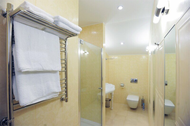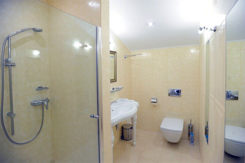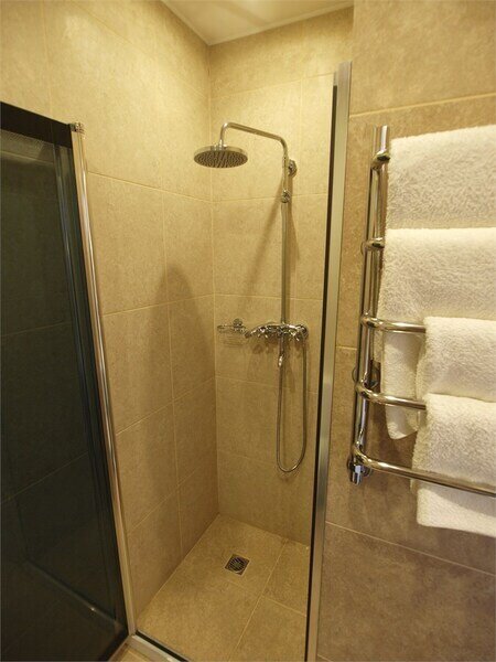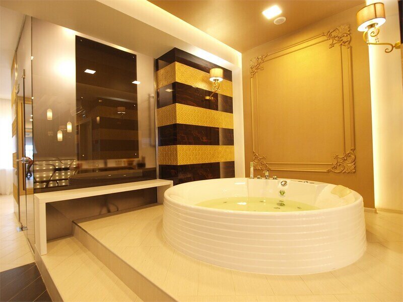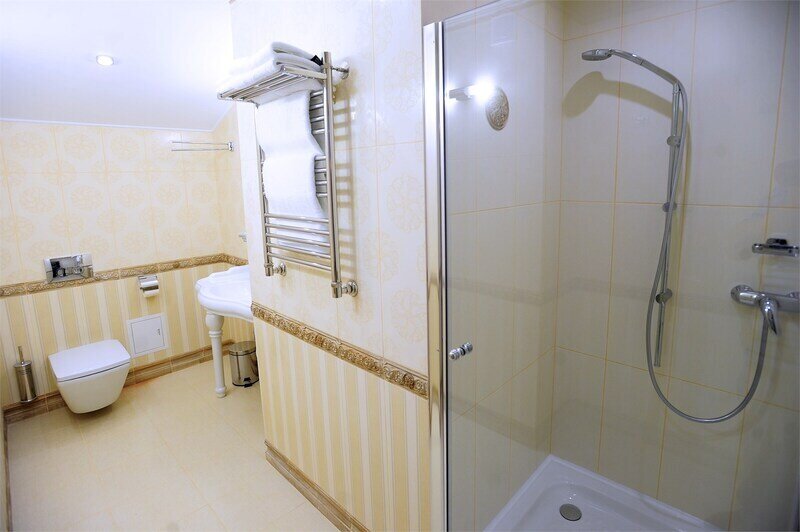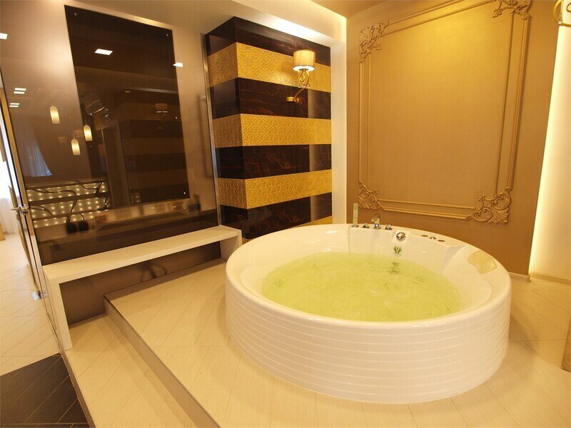В номере кроме ванной комнаты с душевой кабиной есть джакузи с гидромассажем, фен.