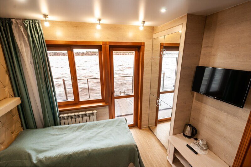 Номера расположены на отдельном дебаркадере от ресторана — 2 этаж.