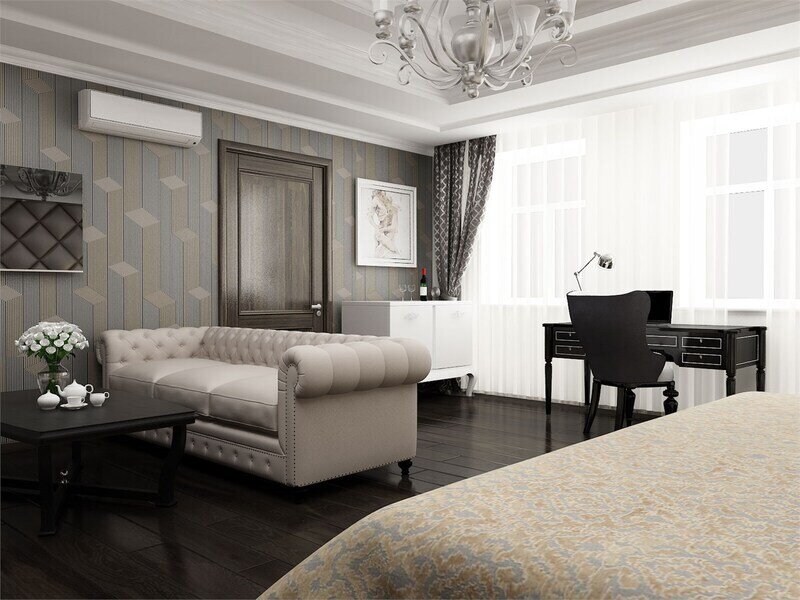 Одна двуспальная кровать, одна диван-кроватьВ гостиничном номере