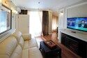 Столовая - гостиная: барная стойка со встроенной двухкомфорочной электроплитой, чайник, чайные пары, холодильник, микроволновая печь. Обеденный стол (до 12 персон), кресла, диваны, два ЖК телевизора, кондиционер, выход на балкон.