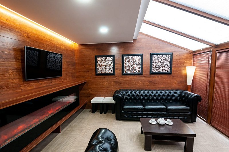 Большой VIP-зал — уютное пространство, которое вмещает 16-20 человек. Он идеально подходит для семейных, корпоративных и деловых встреч, а также для небольших дней рождения. Зал оснащен современной аппаратурой с караоке, а для отдыха предусмотрена мягкая мебель.