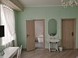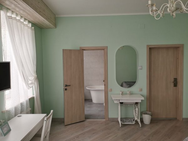 Душ в номере Туалет в номере Гардеробная комната Wi-Fi в номере Сейф у администратора Телевизор в номере Просторный номер для двоих человек с большой ванной комнатой. Номер площадью 24 м2 В номере: двуспальная кровать кондиционер холодильник ж/к телевизор с Яндекс TV зеркало 2 шт кресло торшер чайная станция (чайник, чашки, набор для приготовления чая) письменный стол и стул прикроватные тумбочки туалетный столик телефон Удобства: ванная комната (овальная ванная, туалет, фен, полотенцесушитель, полотенца, халаты, тёплые полы) одноразовые тапочки гардеробВ номере