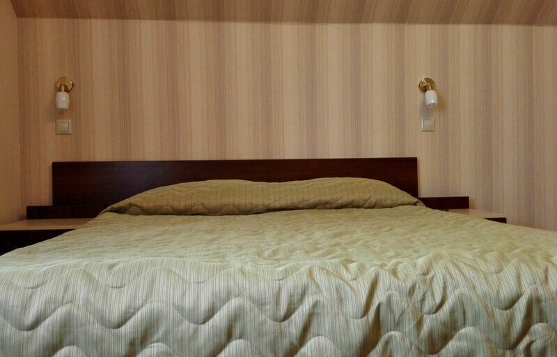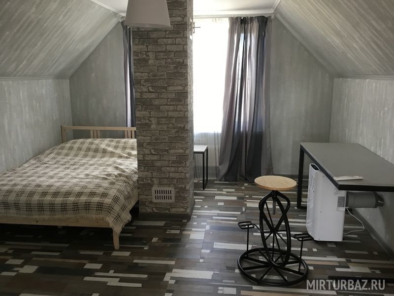 Четырёхместный улучшенный номер, в отдельно стоящем доме с мансардой. Две спальни, веранда,туалет,бассейн, душ,русская баня.В номере