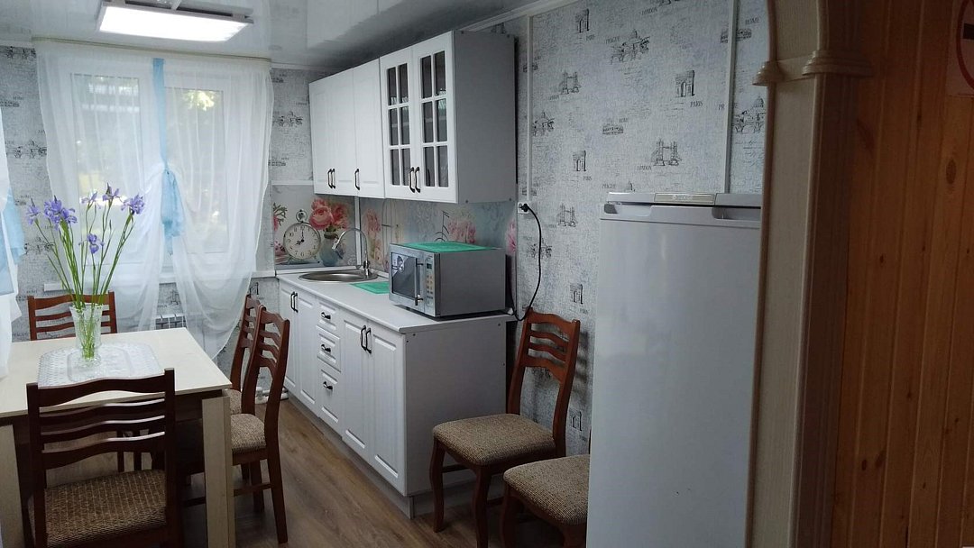 холодильник, фен, микроволновая печь, утюг, ванная комната, ванна или душевая кабина, две односпальные кровати, гладильная доска, стулья, шкаф для одежды, гардеробная, вешалки, журнальный столик, багажная тумба, зеркало, чайник, унитаз, раковина, гостиная зона, отопление, три комнаты, кухонная посуда, стаканы, столовые приборы, стул, стол, тумба, мангал, сушилка для белья, цифровое тв, телевизор с плоским экраном, мини-кухня, кухонный уголок, москитная сетка, вид на лес, антибактериальное средство для рукВ коттедже