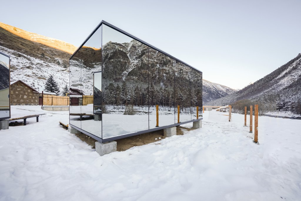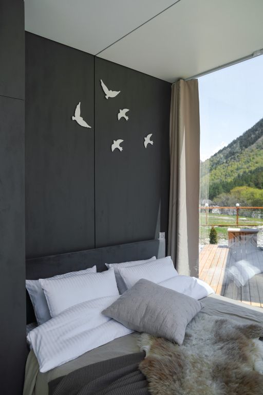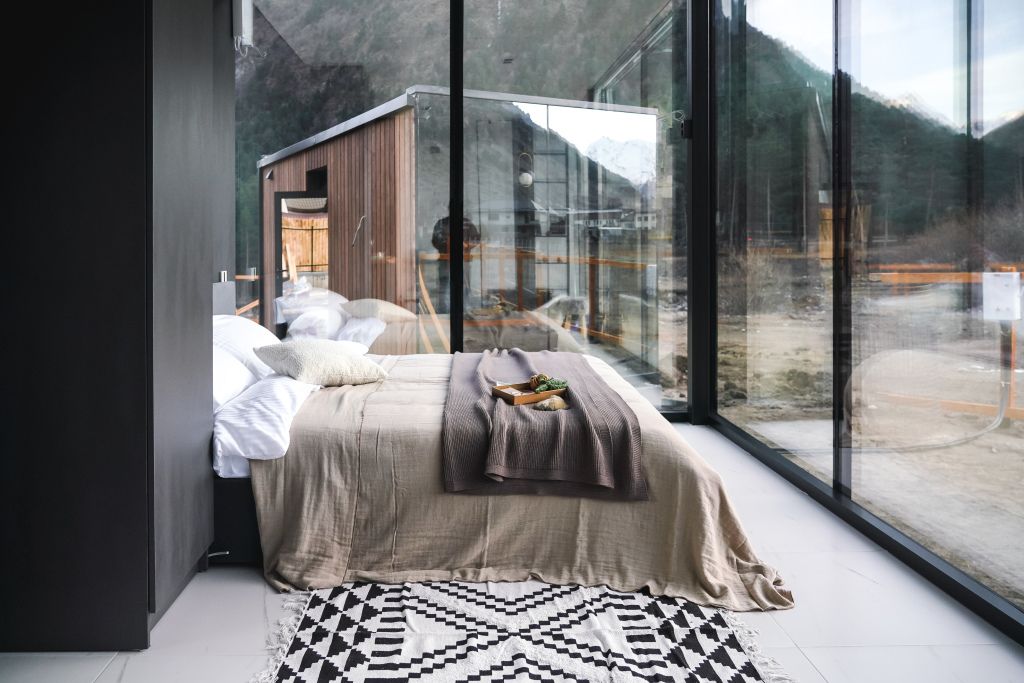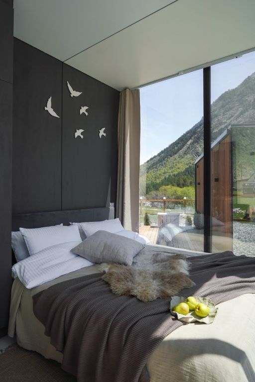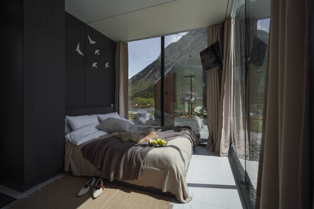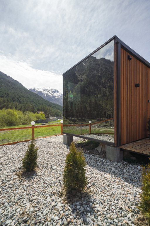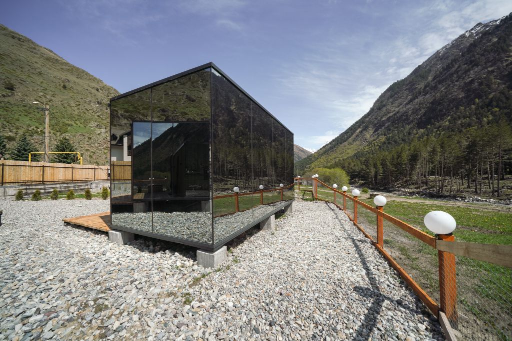 Стильный коттедж с панорамными зеркальными окнами создан для любителей красивых горных пейзажей.