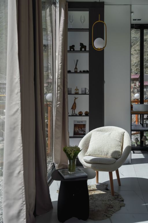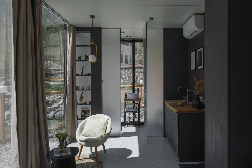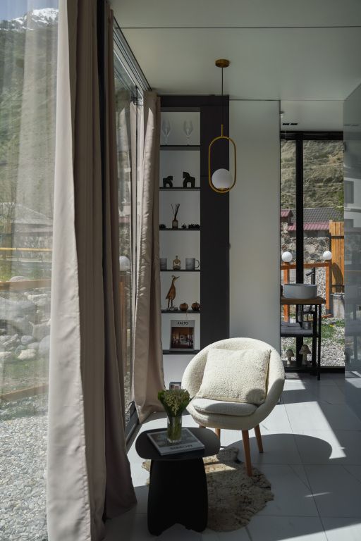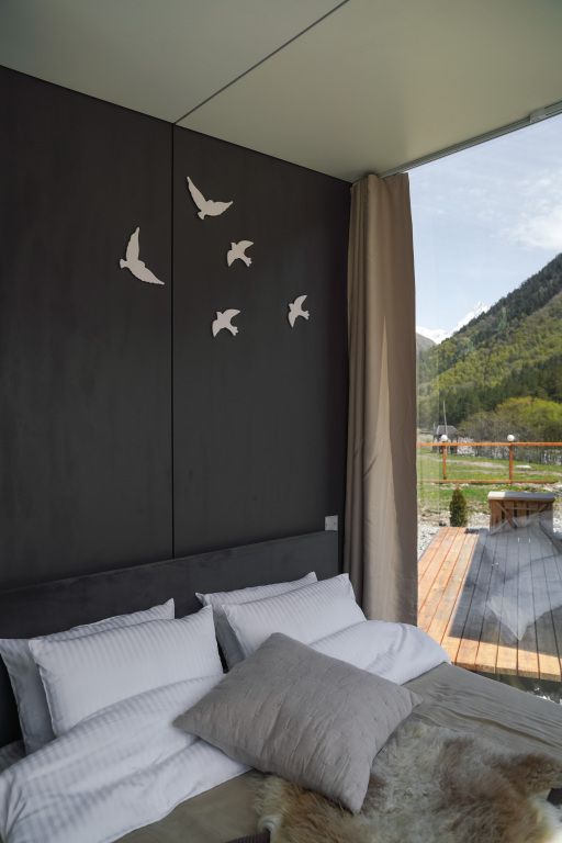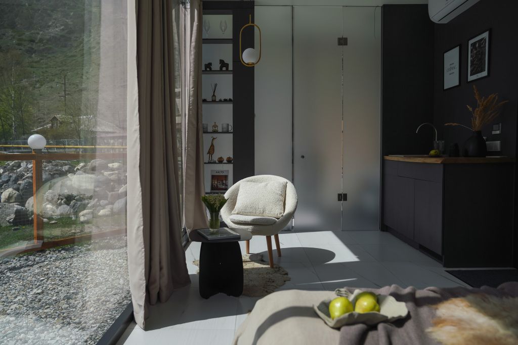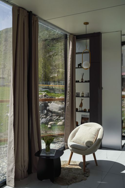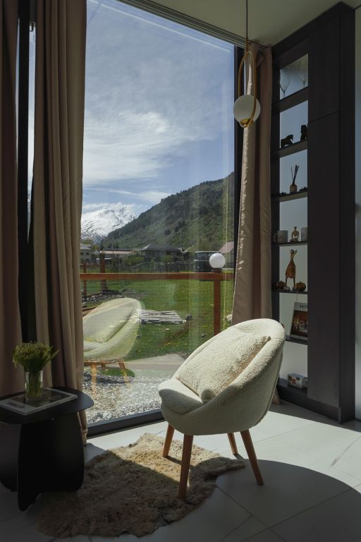 Стильный коттедж с панорамными зеркальными окнами создан для любителей красивых горных пейзажей.