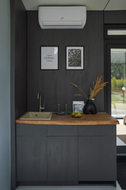 В помещении есть небольшая кухня с микроволновой печью, холодильником, чайником и посудой. На территории можно сделать барбекю.