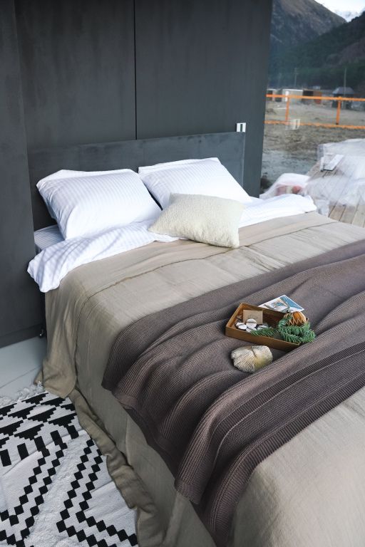 В коттедже уютная кровать с натуральным постельным бельем, пол с подогревом, кондиционер, туалетный столик, телевизор, Wi-Fi. Также имеется собственная ванная комната с тропическим душем. Для безопасности установлен электронный замок с магнитным ключом.