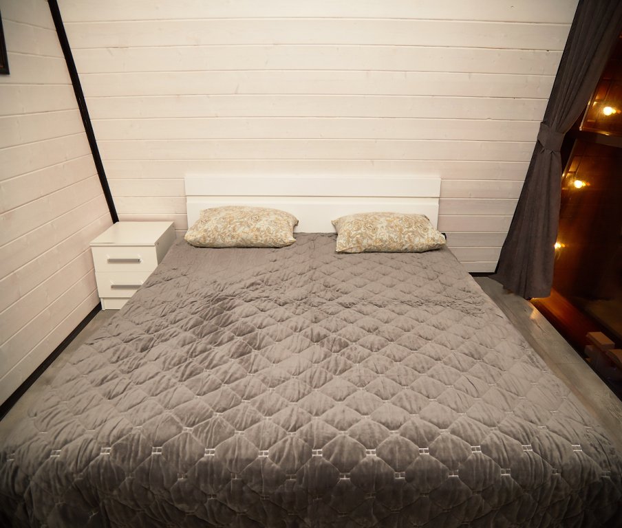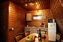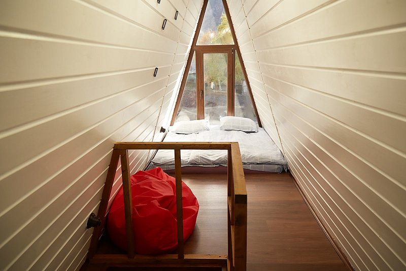 6-и местный коттедж в стиле A-frame, с тремя спальнями, одна из которых находится в мансарде, гостиной и полностью оснащенной кухонной зоной. В распоряжении гостей три отдельные спальни, в первой спальне 2 полутороспальные кровати, во второй спальне 2 полутороспальные кровати, в третьей спальне два напольных японских матраса.
