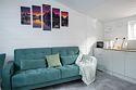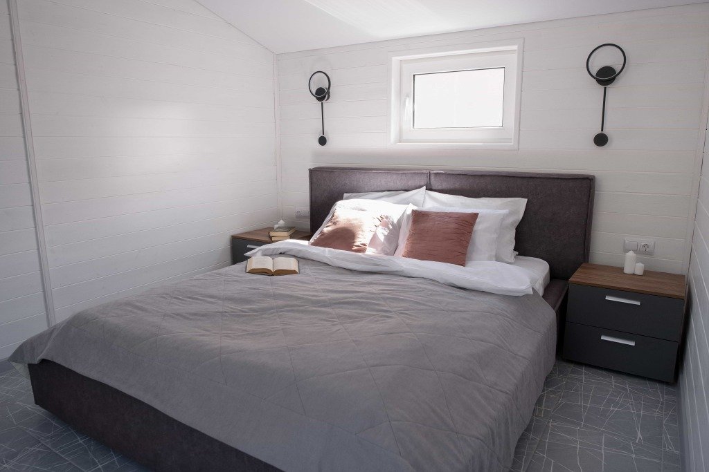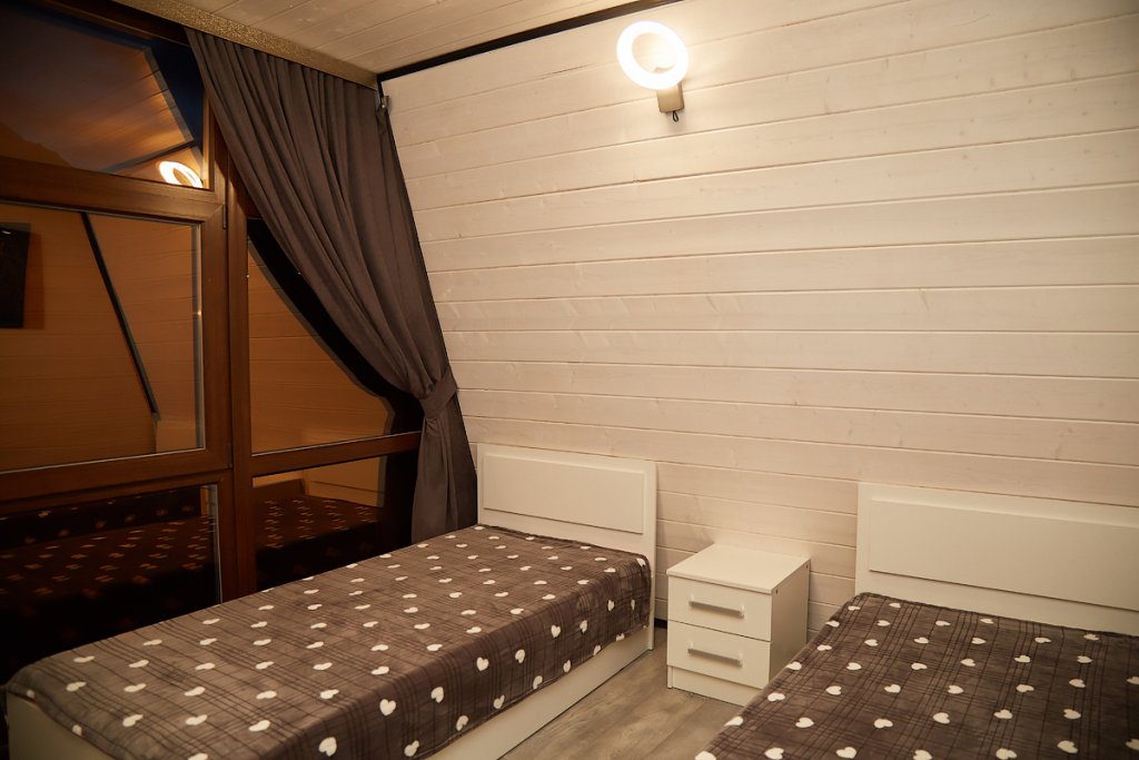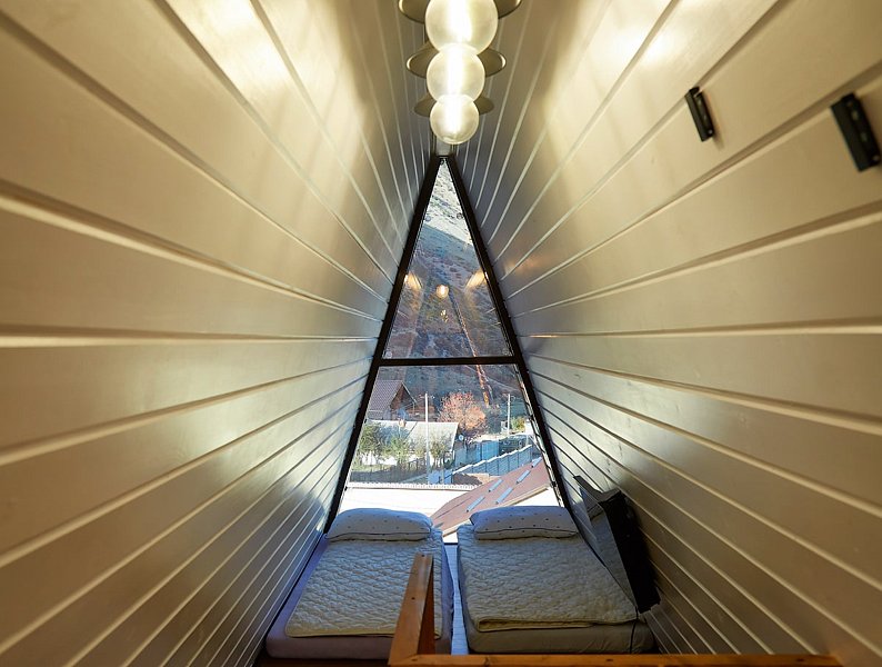 6-и местный коттедж в стиле A-frame, с тремя спальнями, одна из которых находится в мансарде, гостиной и полностью оснащенной кухонной зоной. В распоряжении гостей три отдельные спальни, в первой спальне 1 двуспальная кровать, во второй спальне 2 полутороспальные кровати, в третьей спальне два напольных японских матраса.