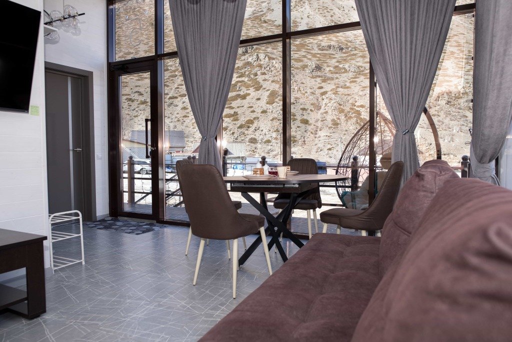 Трехэтажные A-Frame коттеджи оснащены просторной студией, двумя уютными спальнями с панорамными окнами и уникальной зоной отдыха с великолепными видами на Баксанское ущелье. Выйдя на террасу и вдохнув свежий горный воздух, вы поймете, что нашли именно то, что искали для идеального отдыха.
