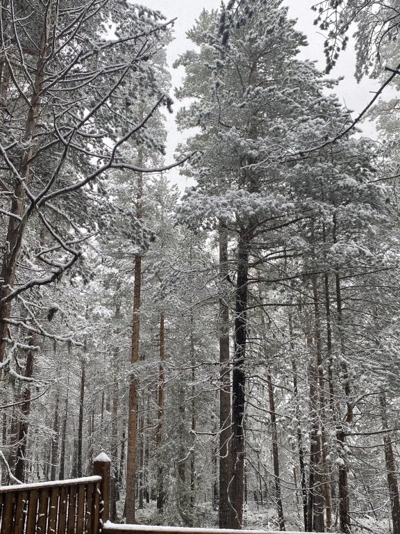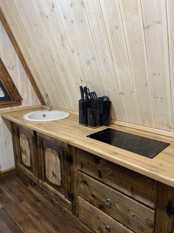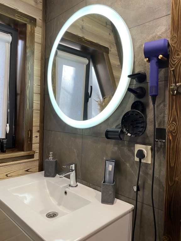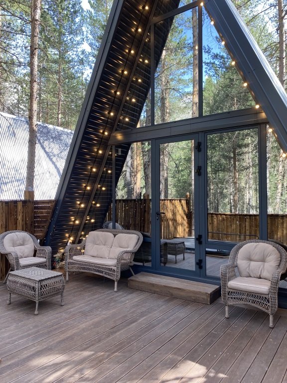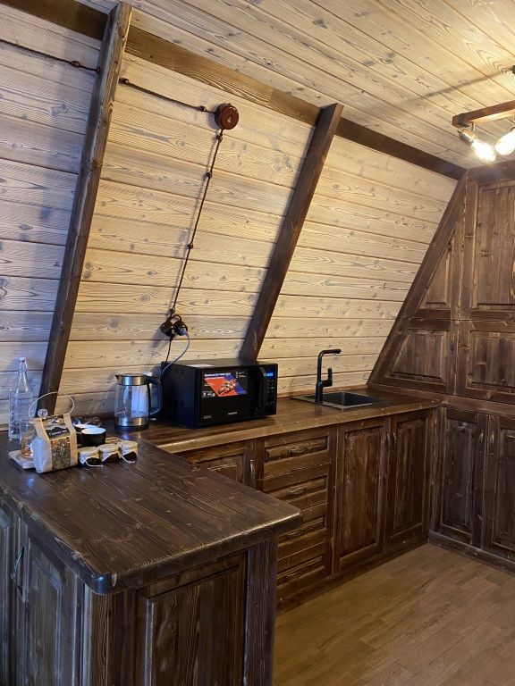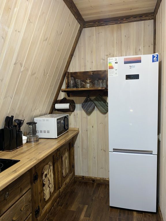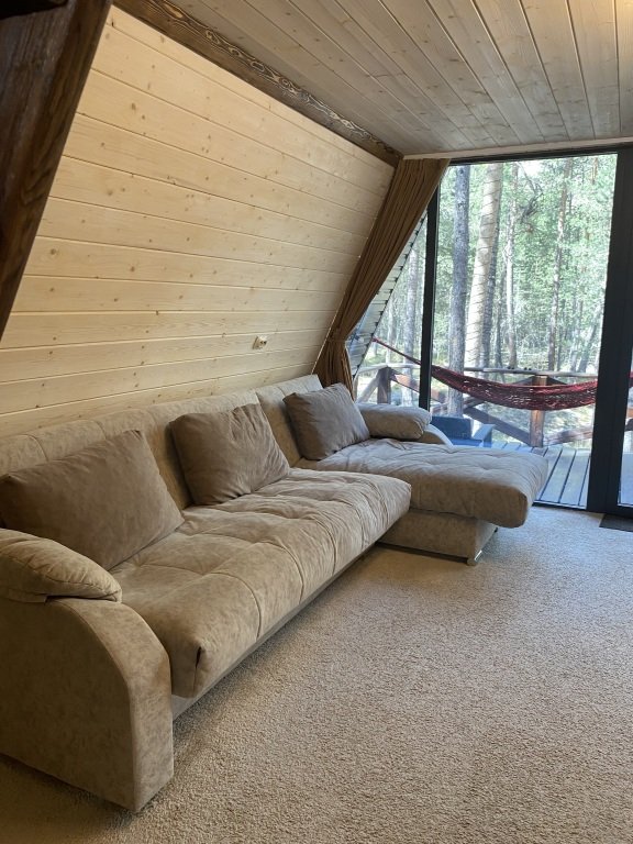 Дом оборудован просторной верандой, где можно отдыхать на уличной мебели, расслабляться в гамаке или качелях, наслаждаясь окружающей природой. Внутри дома есть все необходимое для комфортного проживания: смарт-телевизор, доступ к Wi-Fi, холодильник, микроволновая печь, электрический чайник, плита, фен, а также индивидуальный набор гигиенических средств.