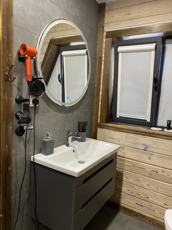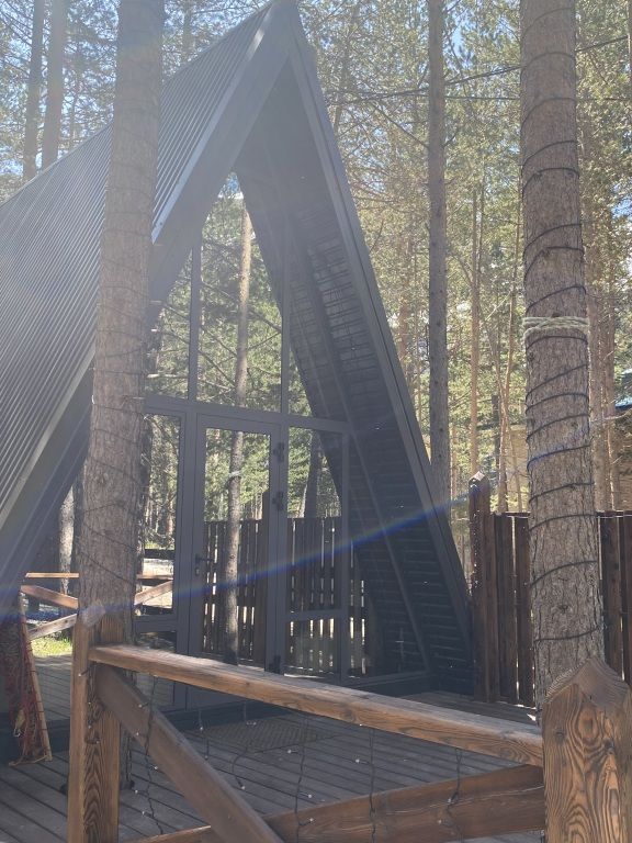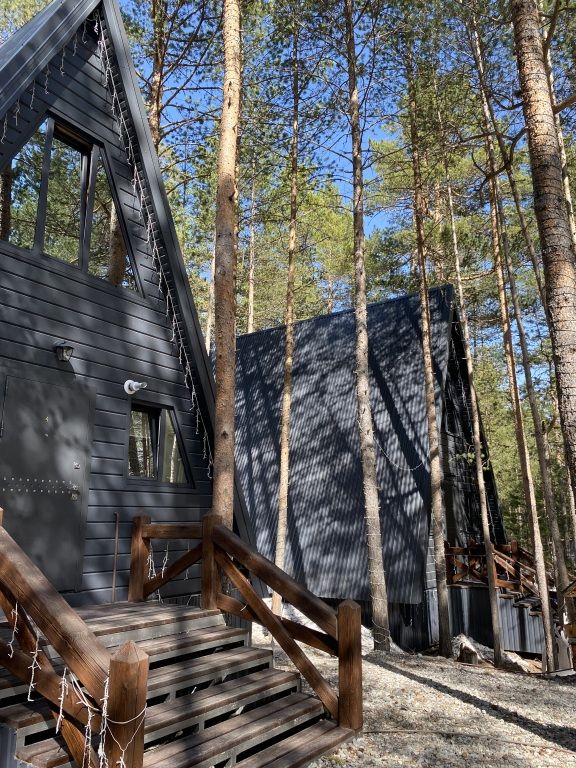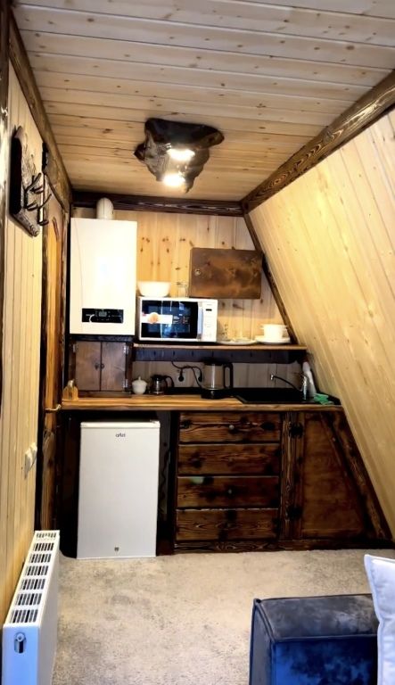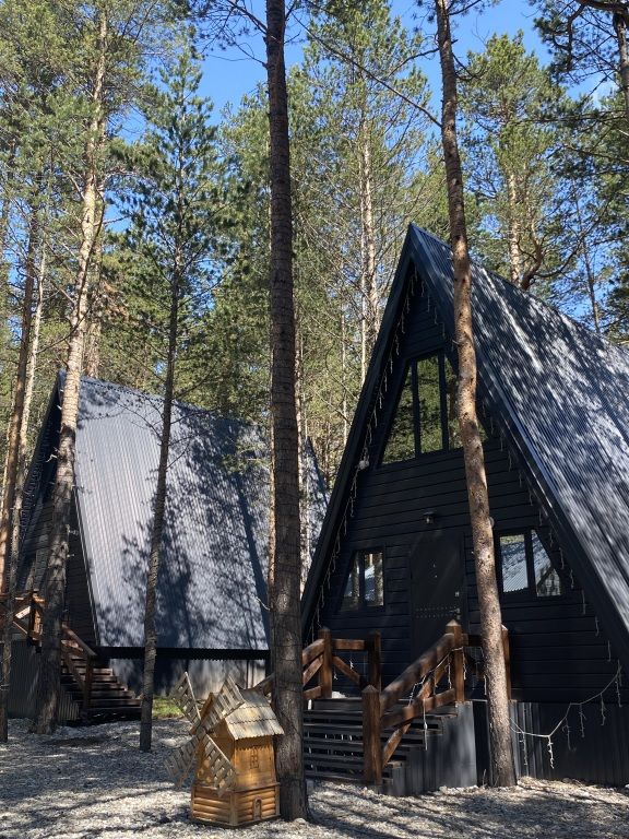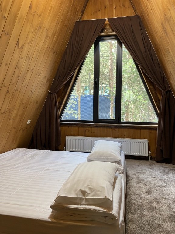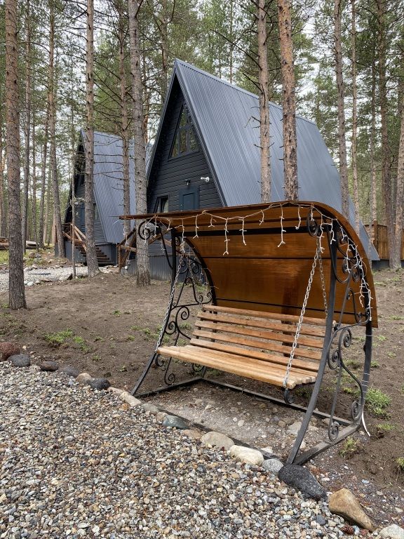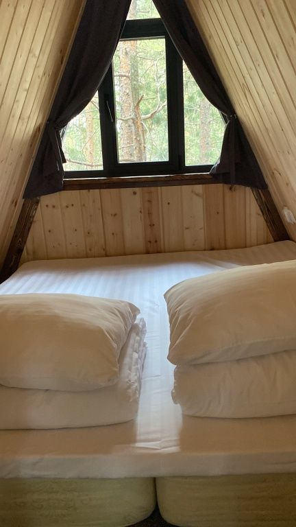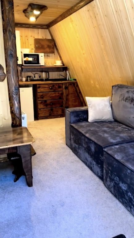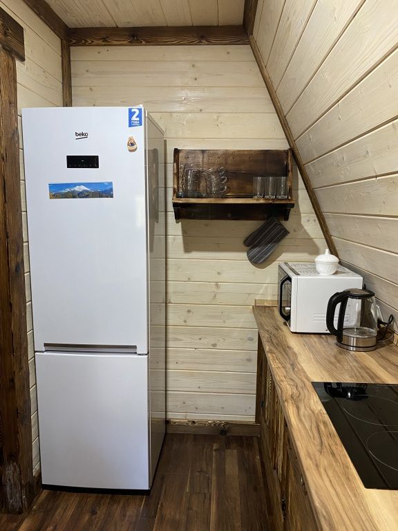 Дом оборудован просторной верандой, где можно отдыхать на уличной мебели, расслабляться в гамаке или качелях, наслаждаясь окружающей природой. Внутри дома есть все необходимое для комфортного проживания: смарт-телевизор, доступ к Wi-Fi, холодильник, микроволновая печь, электрический чайник, фен, а также индивидуальный набор гигиенических средств.