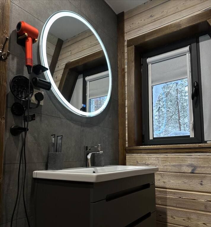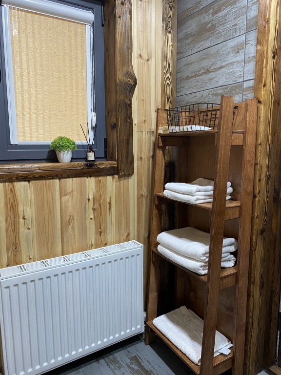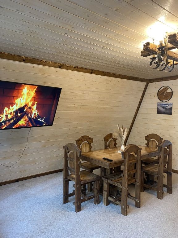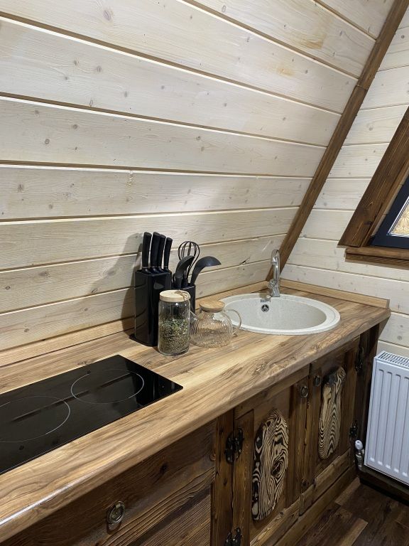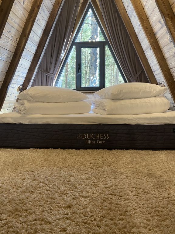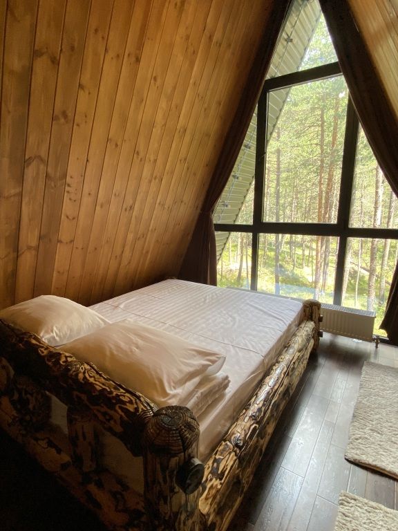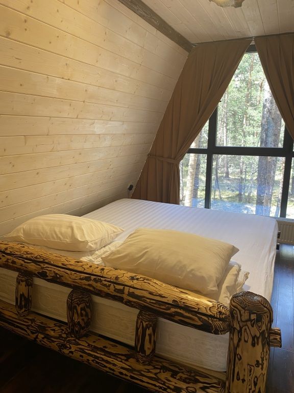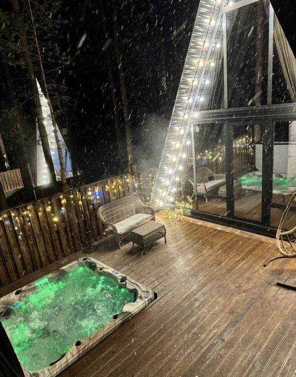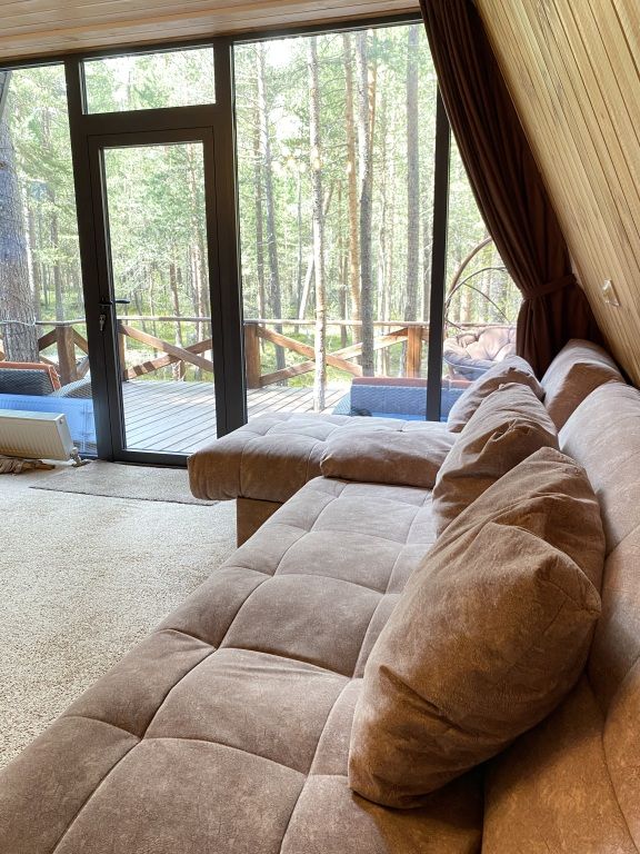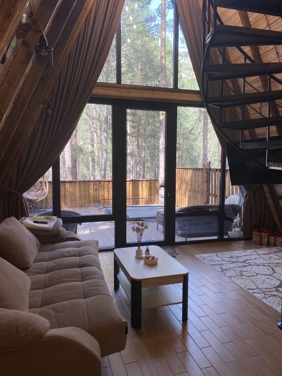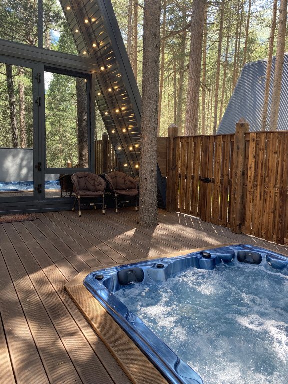 Дом оборудован просторной верандой, где можно отдыхать на уличной мебели, расслабляться в гамаке или качелях, наслаждаясь окружающей природой. Внутри дома есть все необходимое для комфортного проживания: смарт-телевизор, доступ к Wi-Fi, холодильник, микроволновая печь, электрический чайник, плита, фен, а также индивидуальный набор гигиенических средств. Есть джакузи.