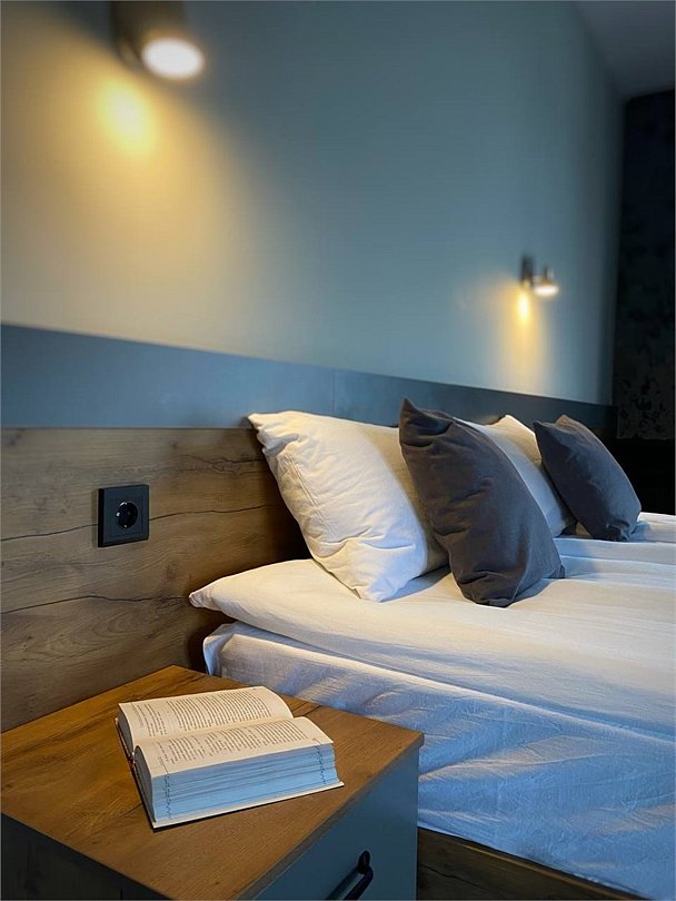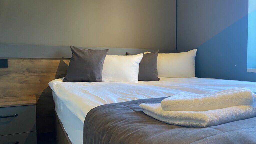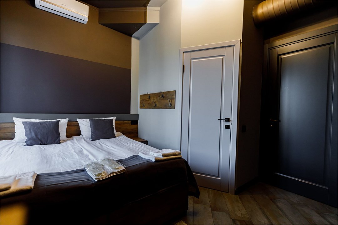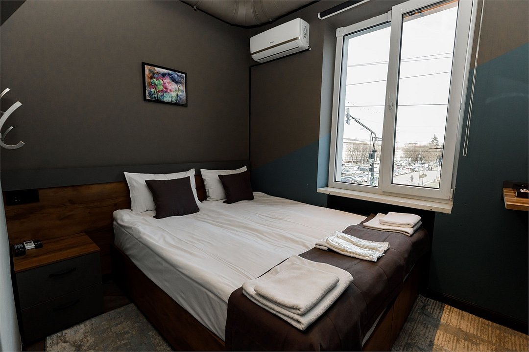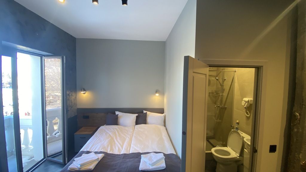 «Двухместный Стандарт» – небольшой, но уютный и стильный номер. Отлично подойдет тем, кто едет в Нальчик для знакомства с городом или по делам и не собирается проводить весь день в отеле. Здесь есть все для комфортного проживания: двуспальная кровать бокс-спринг (можно раздвинуть) с удобными матрасами, кондиционер, плоский телевизор, чайный набор, электрический чайник, блэкауты на окнах для безмятежного сна. В ванной: душевая кабина, тропический душ, фен, банные принадлежности (шампунь, гель для душа, жидкое мыло), гигиенический душ, тапочки, полотенца.Комфорт двухместный с 1 кроватью или 2 отдельными кроватями
