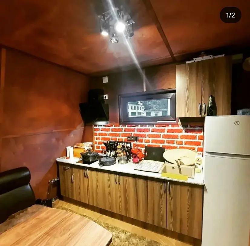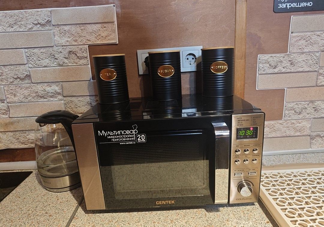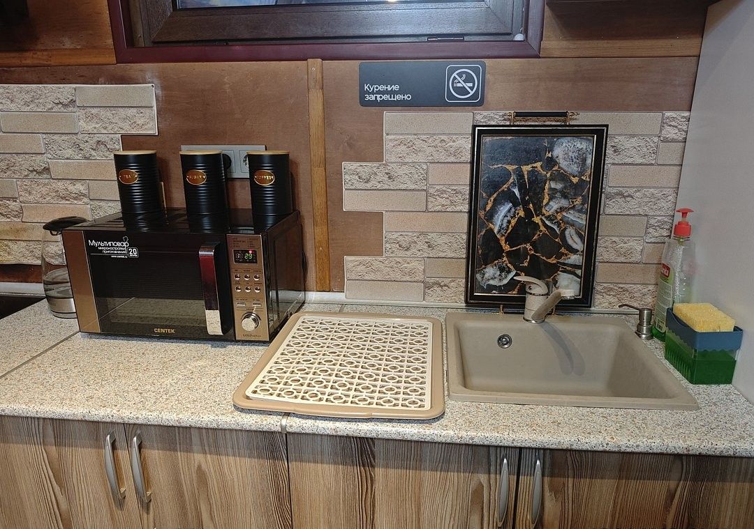 - кухня оборудована всем необходимым инвентарем, тарелки, вилки, ложки, ножи, кастрюли, сковорода и прочее...