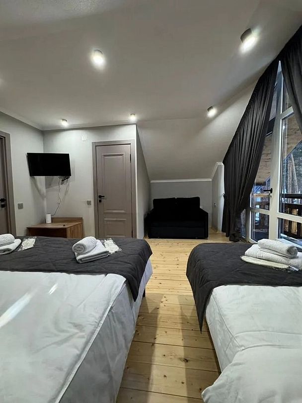 После насыщенного дня, проведенного на свежем воздухе, просторные спальни, обставленные качественной мебелью, обещают крепкий сон и расслабляющий отдых. Для тех, кто хочет оставаться на связи с миром, в доме есть Wi-Fi и телевидение, что позволяет оставаться на связи с миром, не покидая уединенной атмосферы леса.