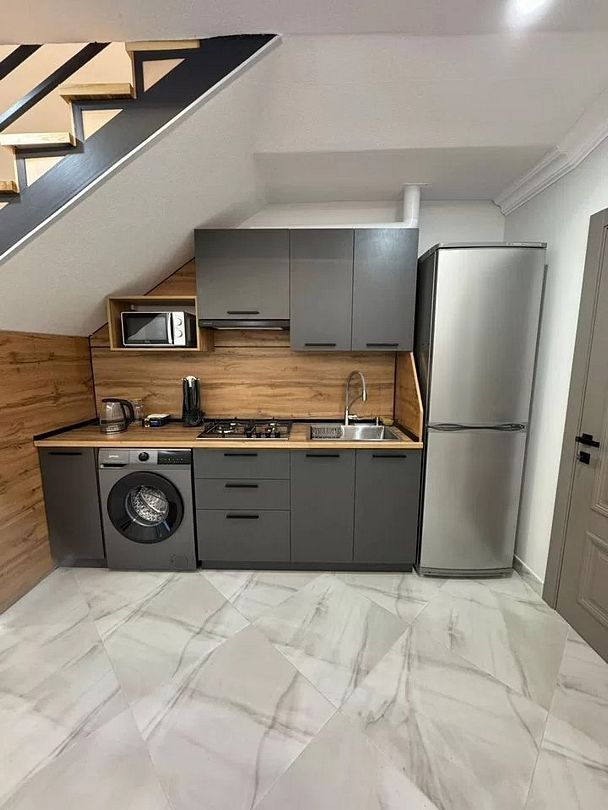 Внутри дома царит атмосфера домашнего уюта. Гости могут воспользоваться полностью оборудованной кухней, где найдется все необходимое для приготовления вкусных и полезных блюд. Холодильник, плита, микроволновая печь и современная бытовая техника позволят каждому почувствовать себя настоящим кулинаром. Электричество, газ, отопление и стиральная машина обеспечивают комфорт в любое время года, делая пребывание в доме приятным и беззаботным.