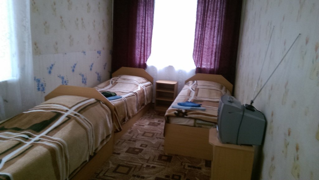 В номере: две или три односпальные кровати, санузел, платяной шкаф, прикроватные тумбочки.