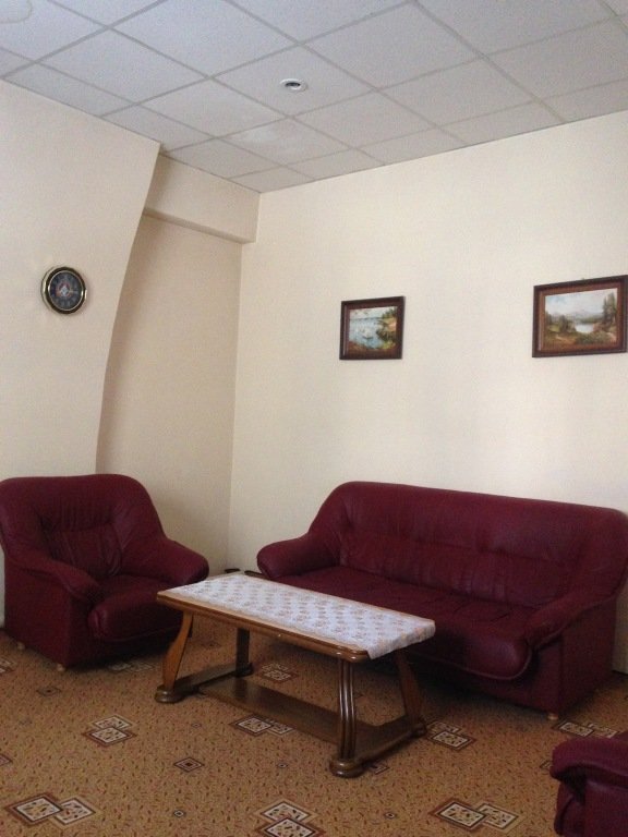 Комфортабельный номер Люкс предлагает: удобную мягкую мебель, кровать, холодильник, кофейный столик, кресла, диван.