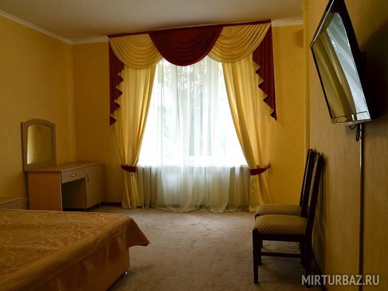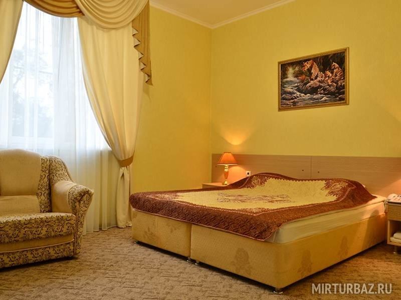 ДостоинстваУдобное местоположение, рядом много санаториев, курортный парк, бювет с минеральной водой, рынок, аптека и магазинчики. Приветливый и отзывчивый персонал. Все очень чистенько, уютненько, все приборы в рабочем состоянии. Персонал моментально реагирует на любые просьбы, лишь бы гостям было удобно и комфортно. Во дворе отеля вместительная парковка. Вкусные завтраки и шашлык в кафе отеля.
