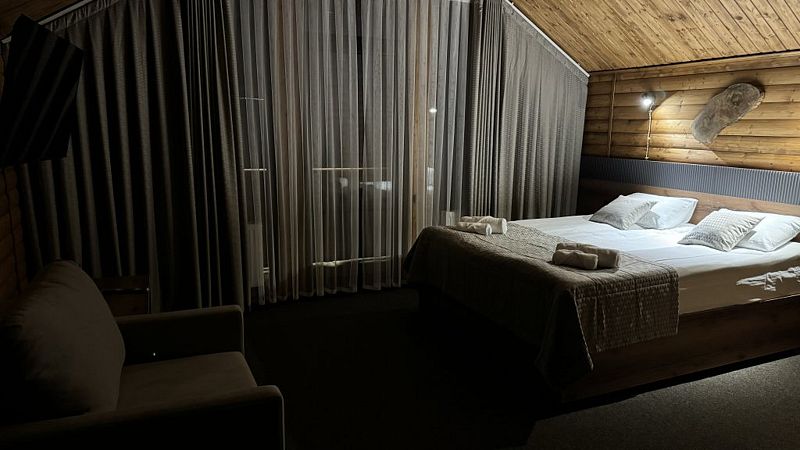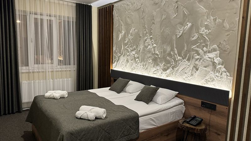 Двухместный «Комфорт» площадью 21 м² располагает всем необходимым для приятного отдыха: в номере двуспальная кровать-трансформер (можно раздвинуть) с ортопедическими матрасами, мебель, чайный набор, TV с плоским экраном и Smart-TV. В ванной комнате: душевая кабина, раковина, зеркало с подсветкой, унитаз, гигиенический душ, гигиенические средства (шампунь, гель для душа, жидкое мыло), фен, полотенцесушитель.Услуги и удобства