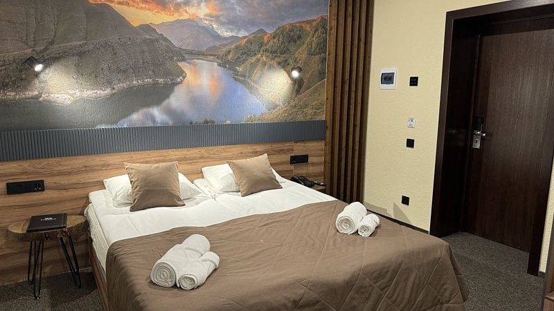 Wi-Fi, интернет, светильник, фен, электронные замки, ванная комната, душевая кабина, санузел, банные полотенца, тапочки, две односпальные или большая двуспальная кровать, тумбы, шкаф для одежды, чайный набор, чайник, унитаз, раковина, питьевая вода, ковровое покрытие, отопление, душ, стаканы, стул, стол, туалетные средства, туалет, внутренний телефон, мини-холодильник, москитная сетка, вид на горы, телевизор со Smart TV, номер для некурящих, usb порт, вид на лес, гигиенический душ, уборка номера, набор для приготовления чая и кофе, услуги прачечной (платно), вешалки-плечики, мыло, без питомцевВ гостиничном номере