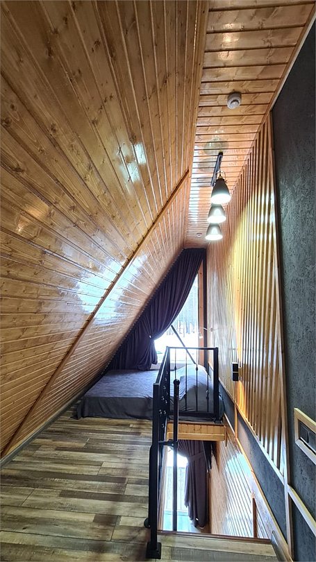 Уютный двухуровневый номер в стильном домике, расположенном на территории Eco Shale — идеальное место для отдыха после активного дня в горах. Просторный первый этаж с удобной зоной отдыха (диван, кресло-мешок, телевизор) и всем необходимым для комфорта: мини-холодильник, чайно-кофейная станция и сейф. Удобная вешалка и стол со стульями позволят с комфортом переодеться и собраться на прогулку. Второй этаж — уютная спальня с двумя двухместными ортопедическими матрасами, где вы отлично выспитесь после насыщенного дня. Дополнительные удобства: тёплый пол (в холодный сезон), собственный санузел с душем и набором косметики, бесплатный Wi-Fi, место для хранения лыж и сноуборда, небольшая терраса с атмосферой горного отдыха.Услуги и удобства