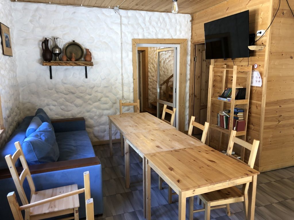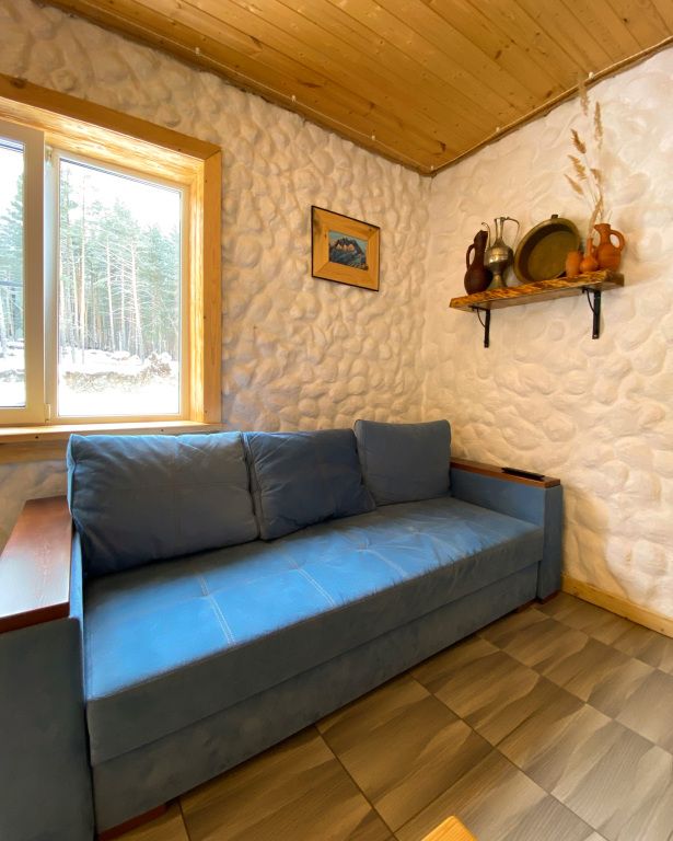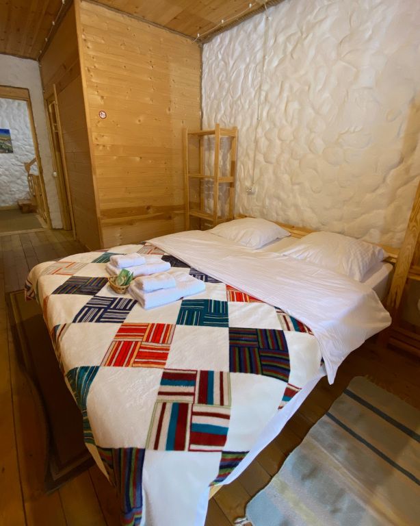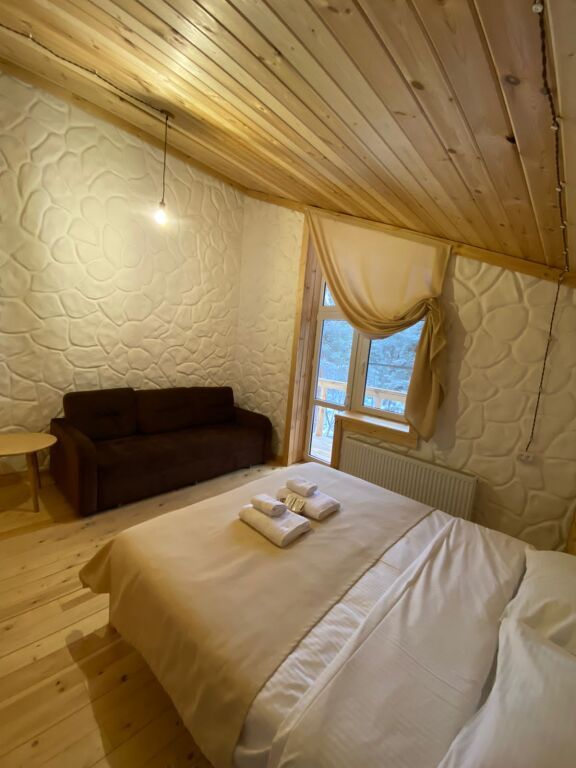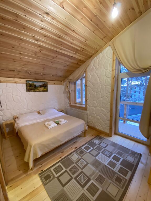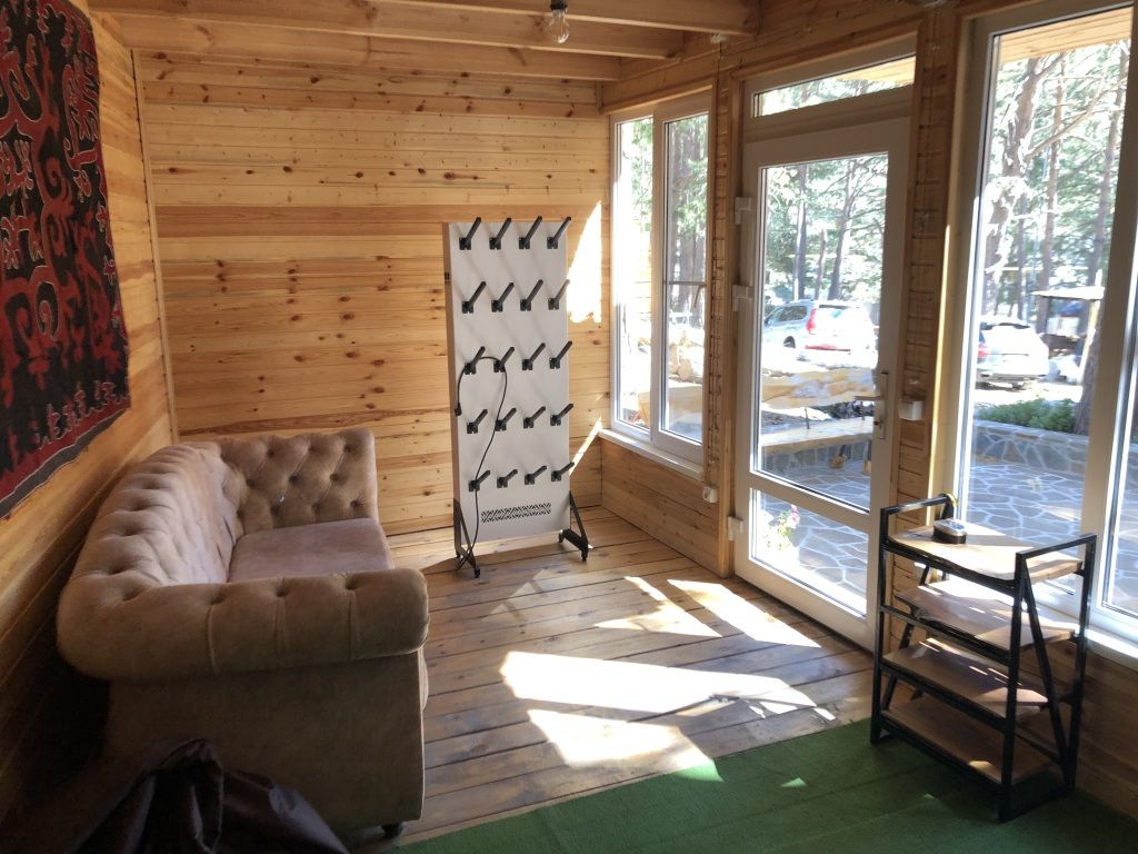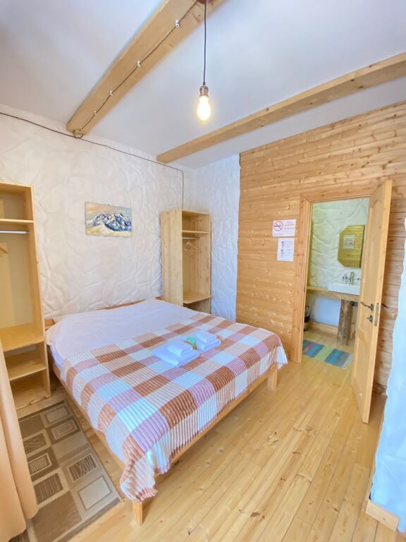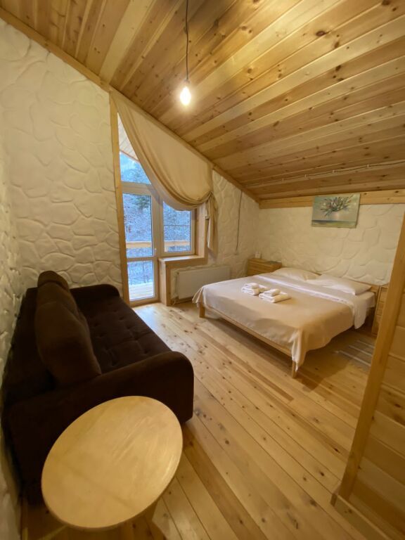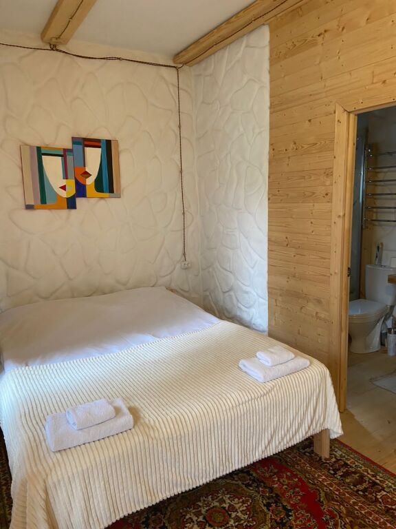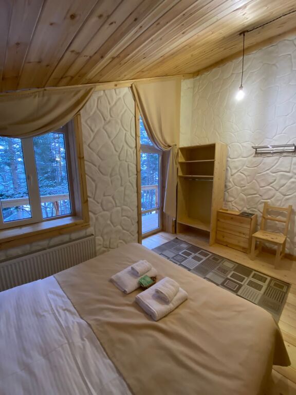 дом оснащен всем необходимым для комфортного проживания: собственный санузел с душем, просторная веранда с прекрасным видом, комната отдыха, собственная кухня. Уборка номера, смена полотенец, постельного белья производится один раз в три дня.