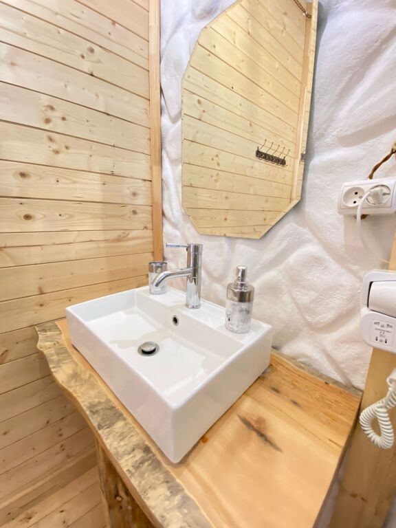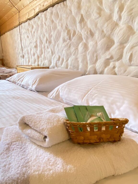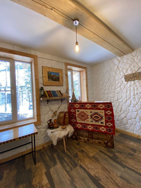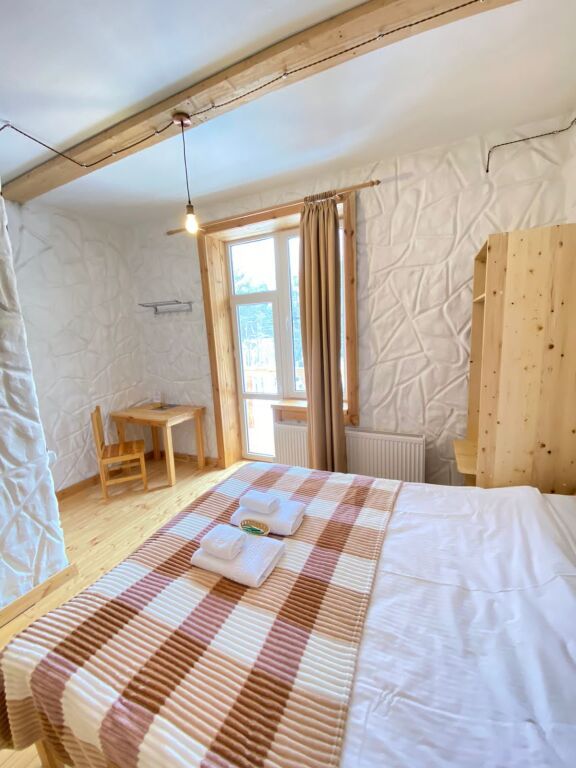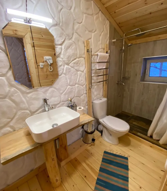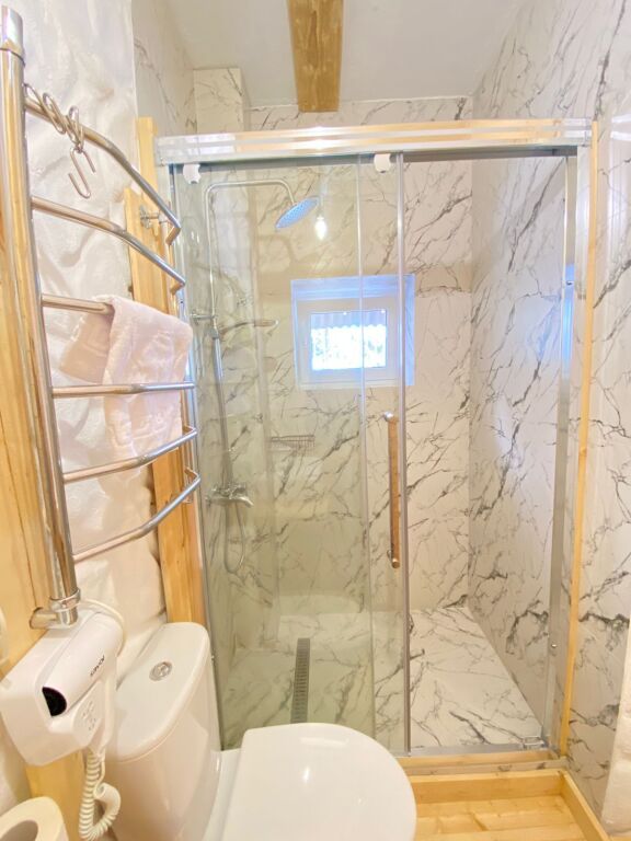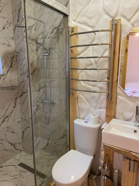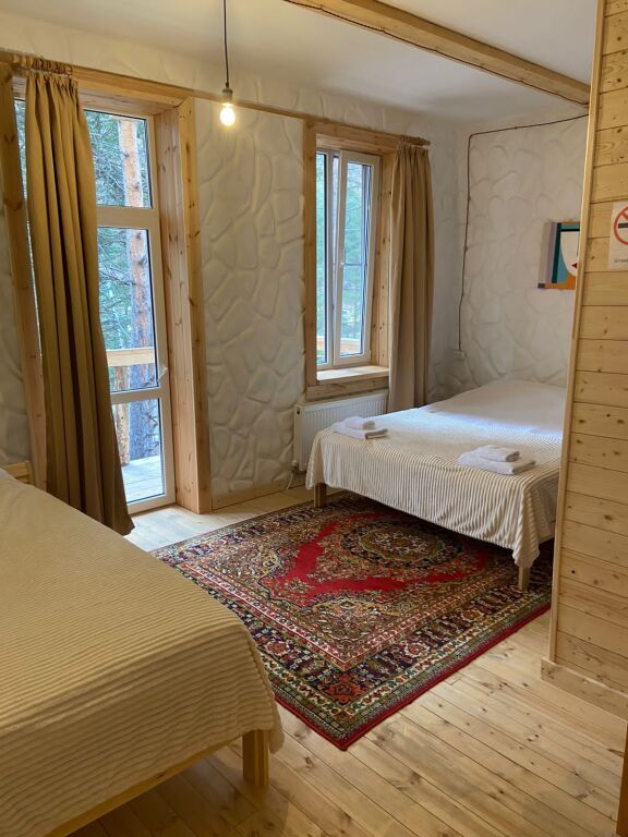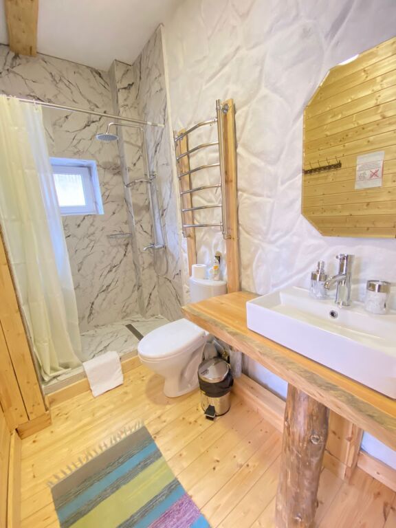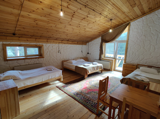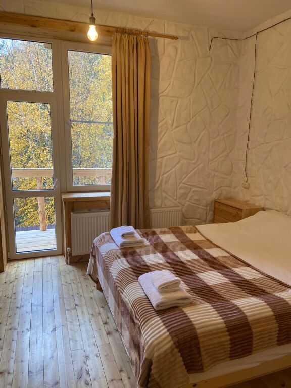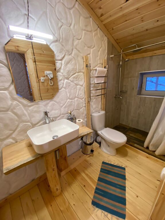 дом оснащен всем необходимым для комфортного проживания: собственный санузел с душем, просторная веранда с прекрасным видом, комната отдыха, собственная кухня. Уборка номера, смена полотенец, постельного белья производится один раз в три дня.