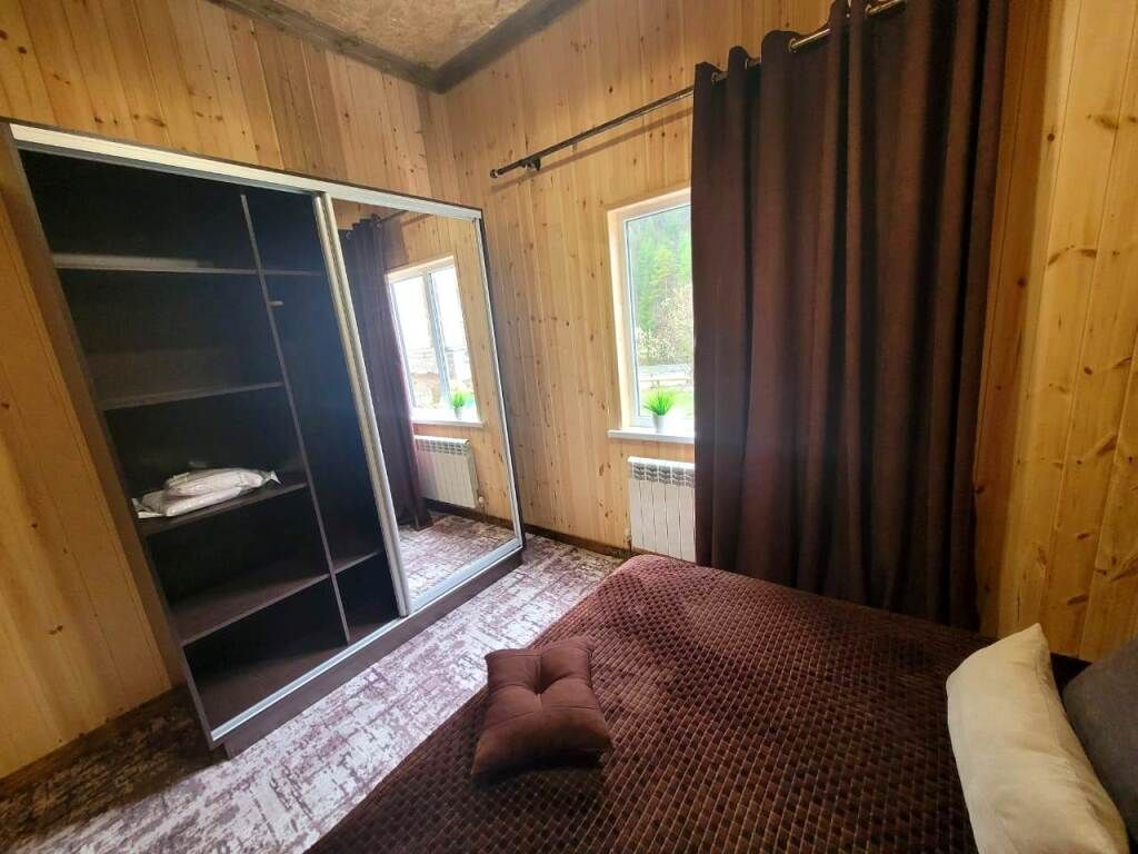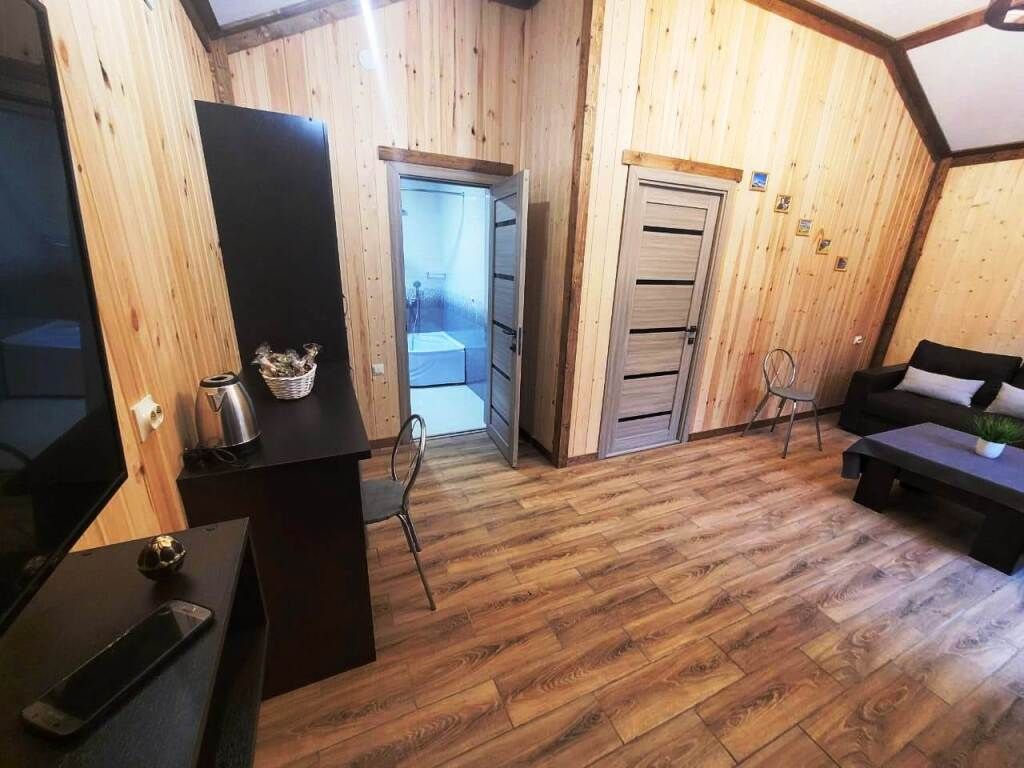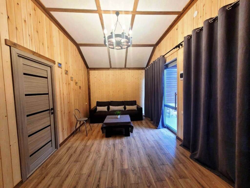 Наши гости, размещаются в семейных комфортабельных эко-коттеджах с террасой в стиле барнхаус. Новые одноэтажные коттеджи, полностью из натуральных и безопасных для здоровья и окружающей среды хвойных пород дерева, что обеспечивает отличный микроклимат. Дома отличаются стильным декором с минимальным количеством стен, благодаря чему воздух в доме свободно циркулирует, оборудованы всем необходимым для комфортного проживания. Панорамное остекление обеспечивает нежный переход к окружающей природе, открытость и простота создают гармонию. Внутренний дизайн выполнен в скандинавском стиле в светлых тонах. Мебель и предметы интерьера выполнены из эко-материалов, а все ткани натуральные и приятные на ощупь. В коттедже одна спальная комната с большой двуспальной кроватью и шкафом-купе , гостиная зона с панорамными окнами, телевизором и кухонным уголком, холодильник, микроволновая печь, варочная электропанель,чайник, набор посуды, ванная комната с необходимыми принадлежностями (полотенца, халаты, тапочки, косметические наборы). Вместимость до 6 человек (с возможностью размещения дополнительных спальных мест. ) На территории, имеется большое и уютное пространство для семейного отдыха, беседки с мангалами на берегу реки, баня на дровах, своя собственная территория для парковки авто. Насладится чашечкой ароматного кофе или чая можно на открытой террасе с видом на горы. Воспользуйтесь всеми преимуществами бесплатного интернета и услугой заказа еды – и всё это, не покидая уютного коттеджа.