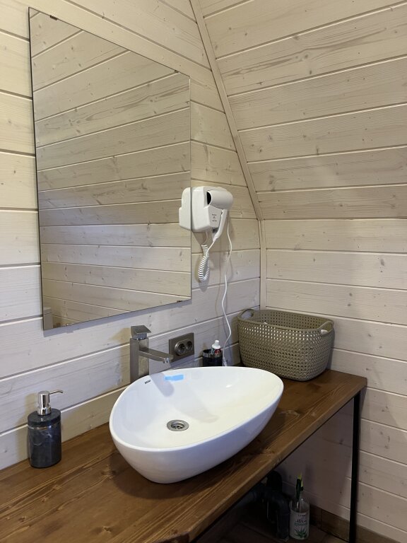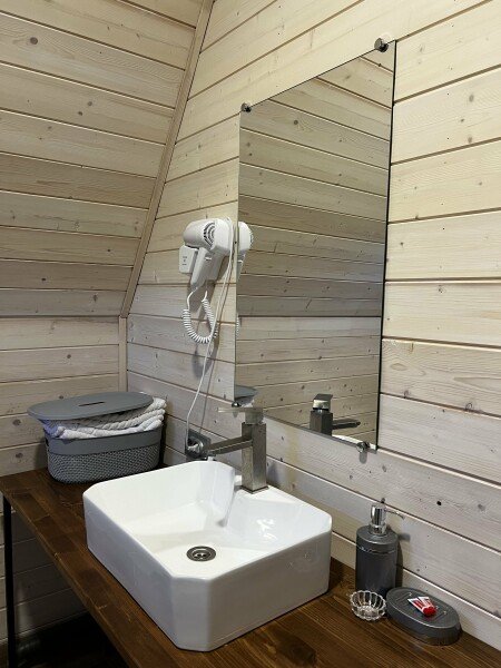 В домиках имеется все необходимое для комфортного проживания: чистое постельное белье, подушки, одеяла, санузел (душевые принадлежности, фен, полотенца), телевизор, Wi‑Fi, холодильник, мини-кухня, кухонная посуда, чайник (чай, кофе, сахар), одноразовые тапочки.