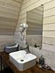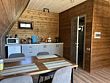 На первом этаже расположена просторная гостиная с большим угловым раскладным двухспальным диваном, а также столовой, полностью оборудованной кухней и санузлом. На втором этаже предусмотрена одна двуспальная и две односпальных кровати, либо вариант с двумя двухспальными местами.