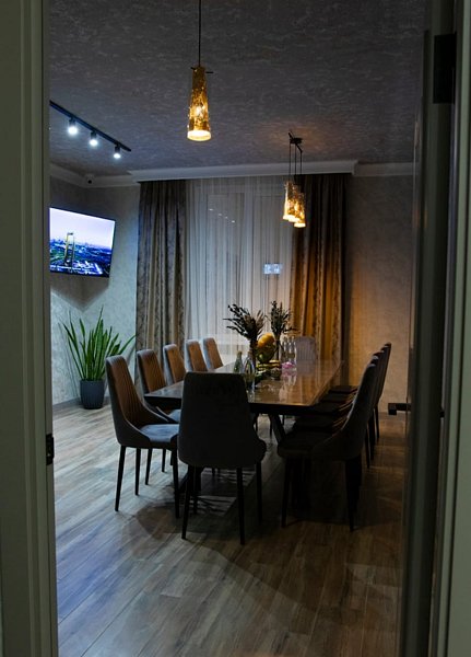 Гостевой дом находится в центре курортной зоны Приэльбрусья, вблизи от минеральных источников "Поляна Нарзанов" в поселке Байдаево. В доме имеется 5 номеров с индивидуальными санузлами: 2 номера - трехместные, 3 номера - двухместные. Просторная и светлая кухня со всеми необходимыми принадлежностями и бытовыми приборами. Во дворе расположен навес с мангалом.