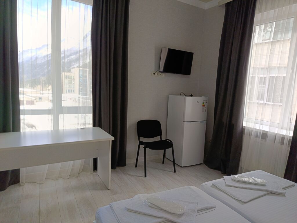 Wi-Fi, интернет, душевая кабина, теплый пол, банные принадлежности, банные полотенца, тапочки, две односпальные кровати, гипоаллергенное белье, гладильная доска, ортопедический матрас, тумбы, шкаф для одежды, информационная карта, меню, сейф, минеральная вода, унитаз, питьевая вода, отопление, плиточное покрытие, центральное кондиционирование, ламинат, туалетные средства, мангал, сушилка для белья, вид на горы, телевизор со Smart TV, теплые полы, онлайн-регистрация до заезда, уборка номера, услуги прачечной (платно), вешалки-плечики, бутилированная вода, мыло, без питомцевВ гостиничном номере
