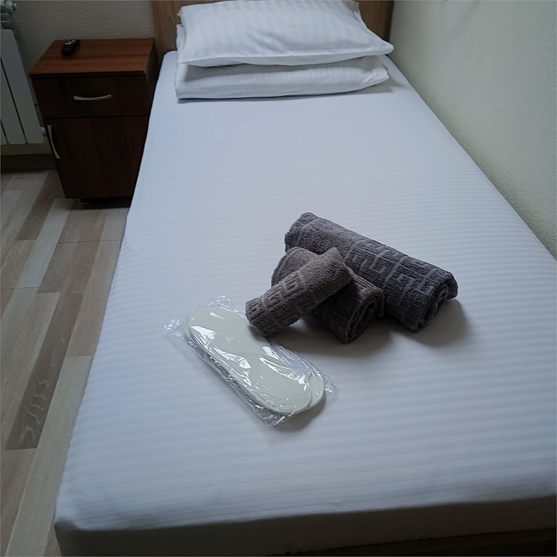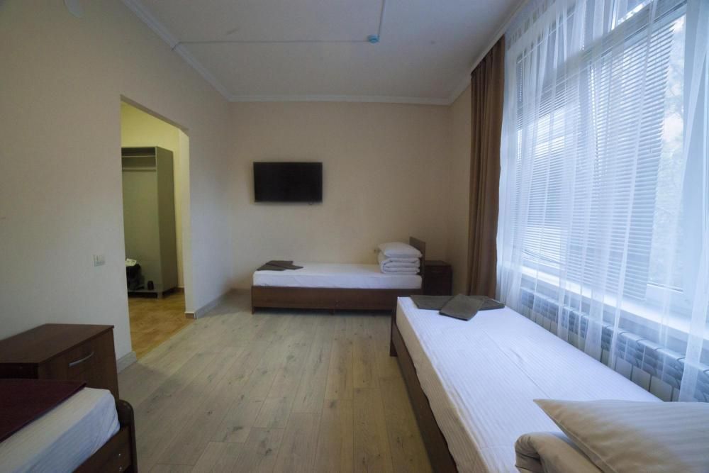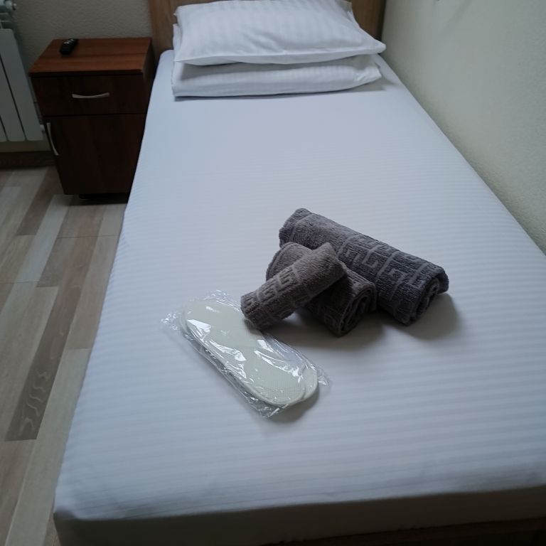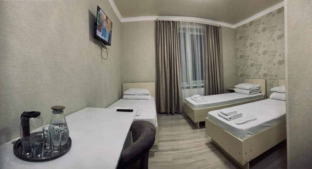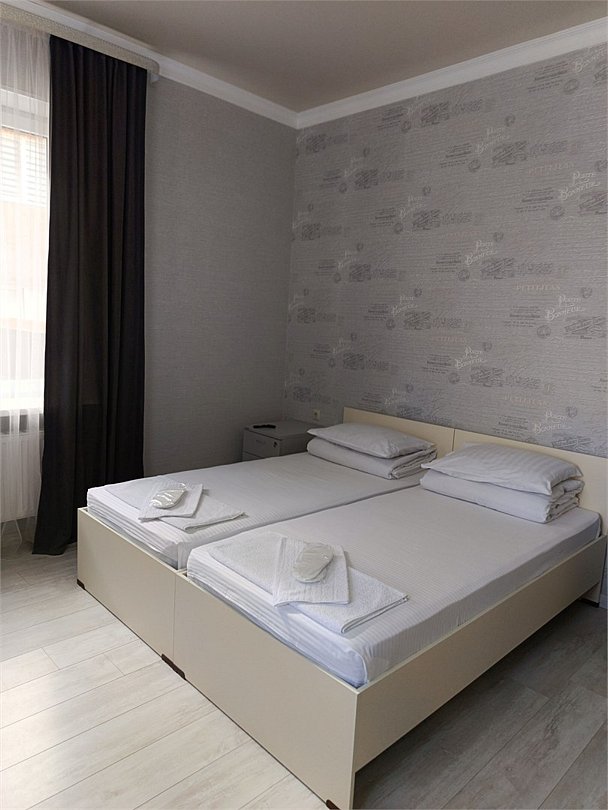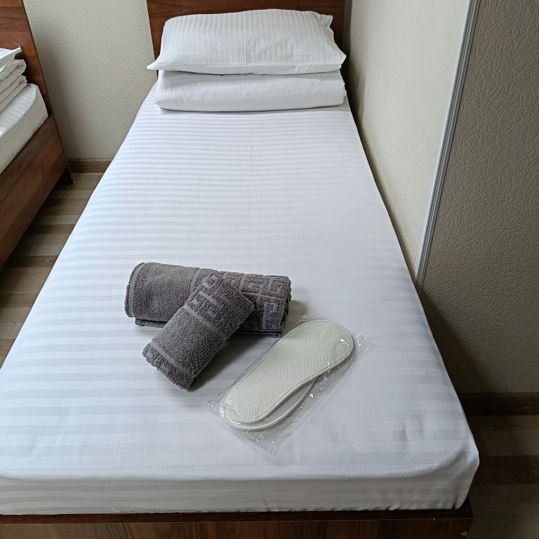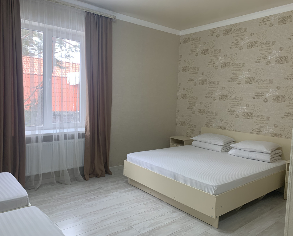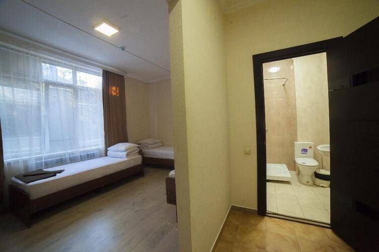 Просторные 3-местные номера для бюджетного проживания. Кровати с ортопедическими матрасами, постельное белье премиального качества. Санузел совмещенный, душевой поддон и вся ванная комната отделана кафельной плиткой, качественная сантехника, зеркало, банные принадлежности. В номере wi fiУслуги и удобства